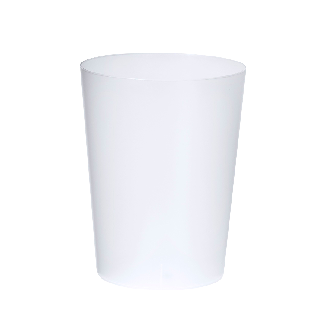 Denne kop er lavet af fleksibel og holdbar PP (polypropylen) plastik og er designet til langvarig og pålidelig brug. Den er certificeret BPA-fri og har en ren, semitransparent finish.