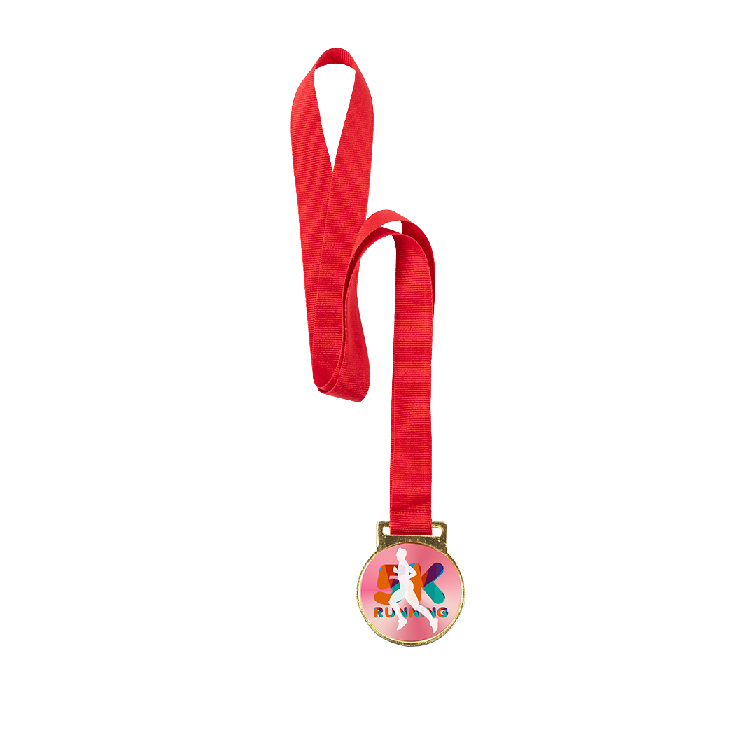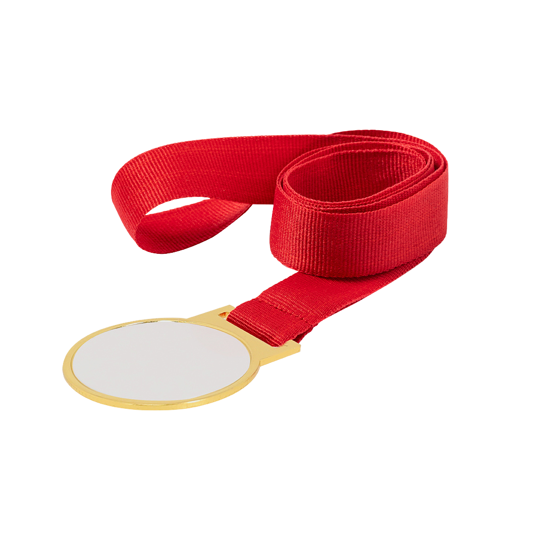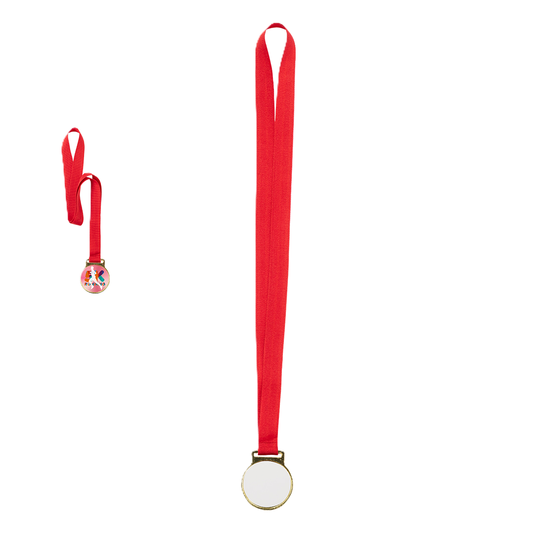 Denne medalje har en lys, glat guldfinish, der giver et klassisk look til enhver præstation. Den er specielt designet til personalisering. Medaljen har et dedikeret glat område, der er perfekt til at påføre dit med eget tryk logo, tekst eller design i fuld farve via sublimering (sublimeringsskive/tryk medfølger ikke). Denne proces giver dig mulighed for at trykke dine brandede designs separat og påføre dem for et skarpt og levende resultat. Hver medalje leveres klar til overrækkelse med et inkluderet rødt polyesterbånd til halsen.