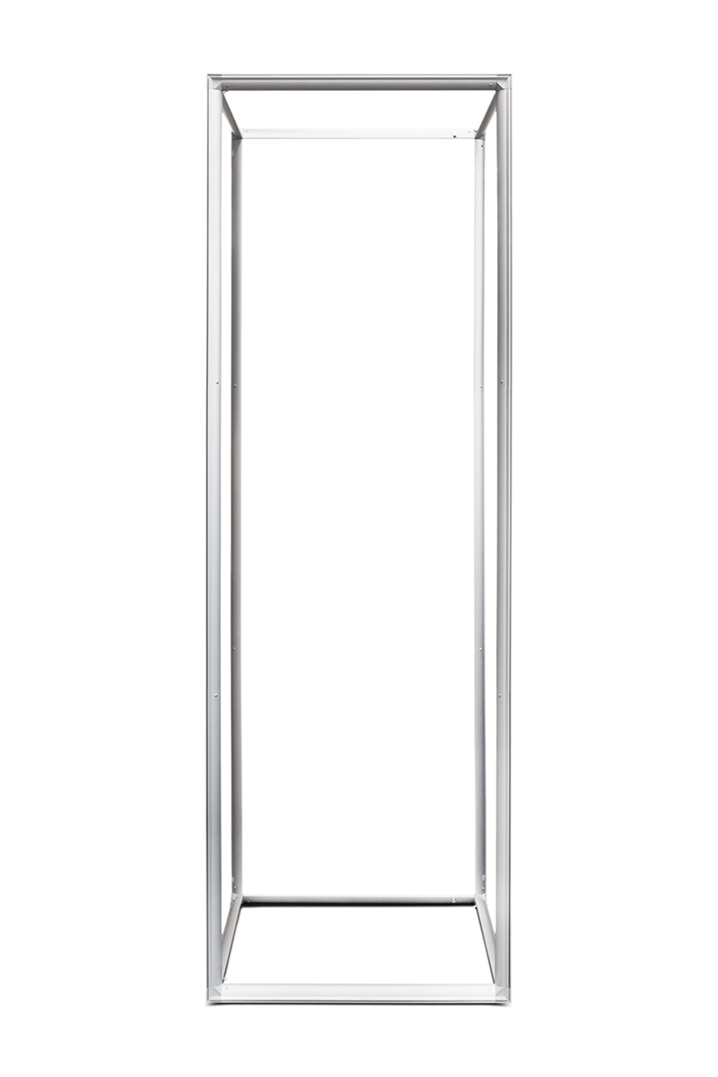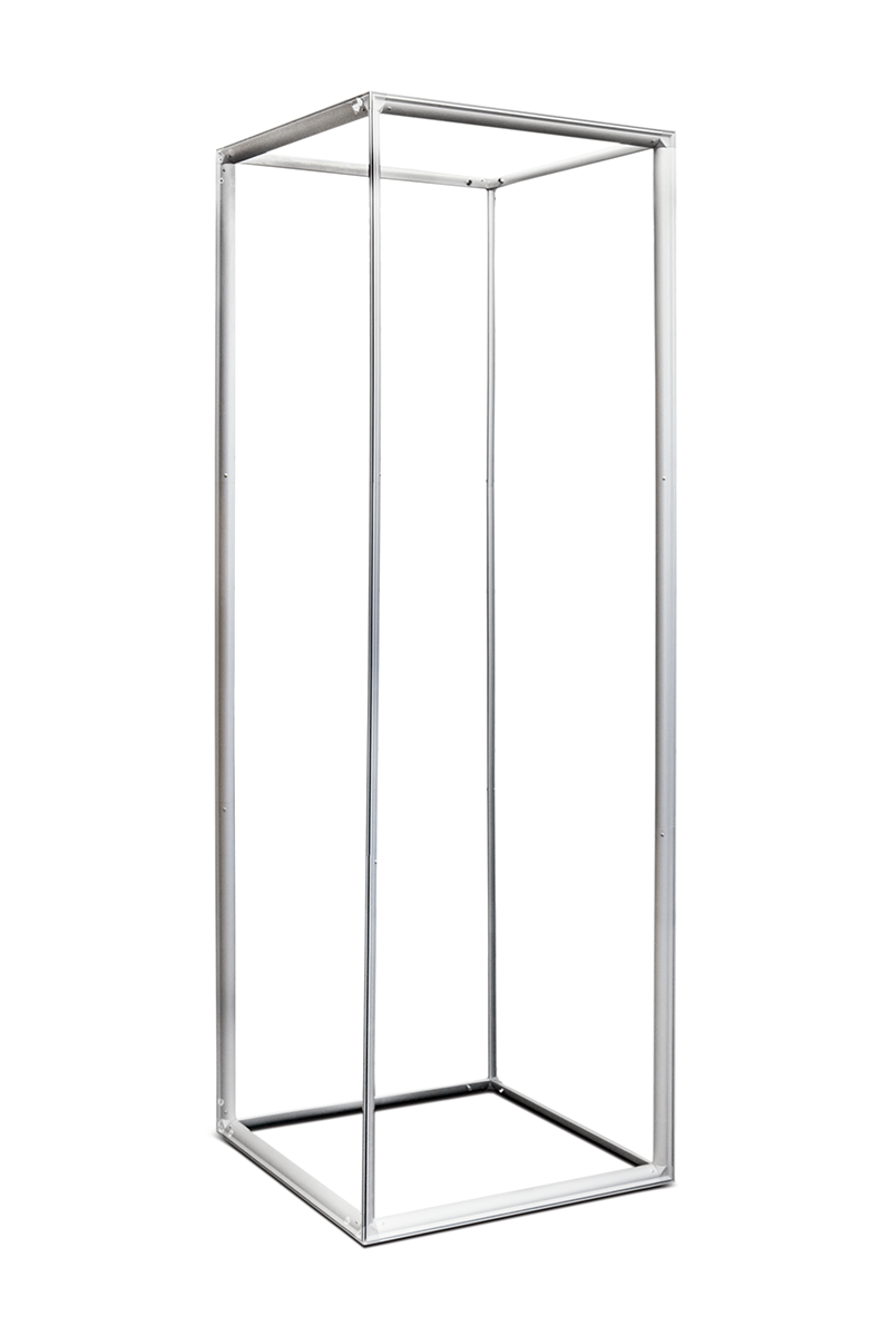 system, which uses a textile graphic with a silicone edge inserted into an aluminium frame. This solution creates a perfectly tensioned, smooth and seamless surface, giving the column a refined, high-end appearance from every angle. The solid yet lightweight aluminium construction ensures stability and durability while remaining convenient to transport. The SEG system enables quick and precise graphic installation, making the structure ideal as a freestanding display, branding element, information point or decorative feature at trade fairs, events and promotional spaces. Assembly is straightforward and requires no specialised tools. After use, the elements can be easily disassembled and packed into a SEG COLUMN is the perfect choice for users looking for a modern, visually striking and versatile display solution that adds a premium touch to any professional environment.