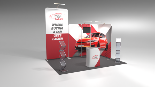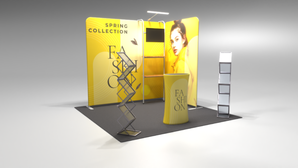 Pop-up exhibition stands are the most popular choice for businesses that exhibit regularly. Easy to transport, quick to assemble, and available in a wide range of sizes, they offer an excellent balance of impact and practicality. A pop-up stand combined with printed exhibition bannerit creates an instantly recognisable branded space without the complexity or cost of a fully bespoke build. They work particularly well as small exhibition stands for compact spaces, or as the backbone of a larger setup alongside mainosseinät, mainostelineet, ja hanging displays.