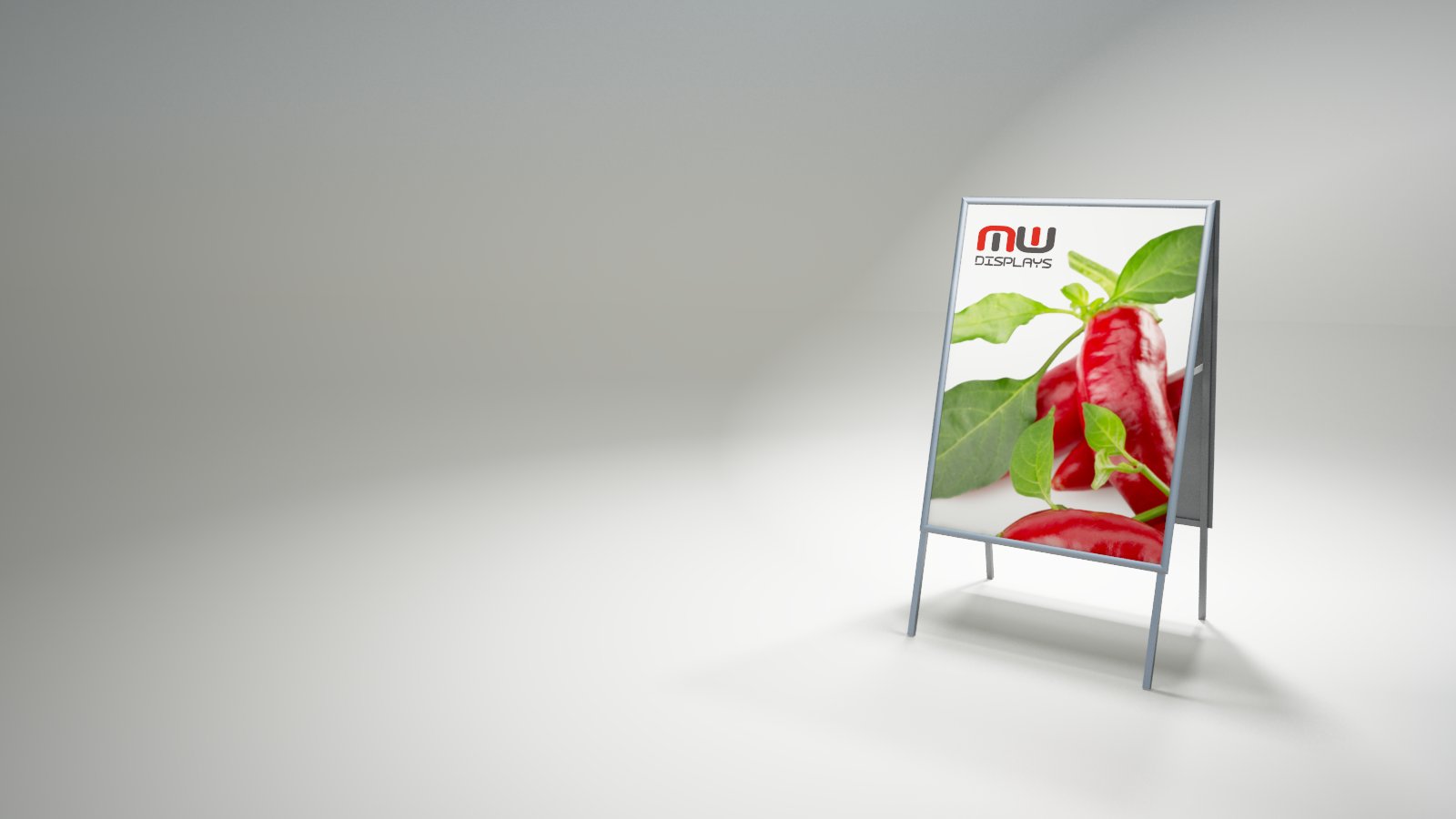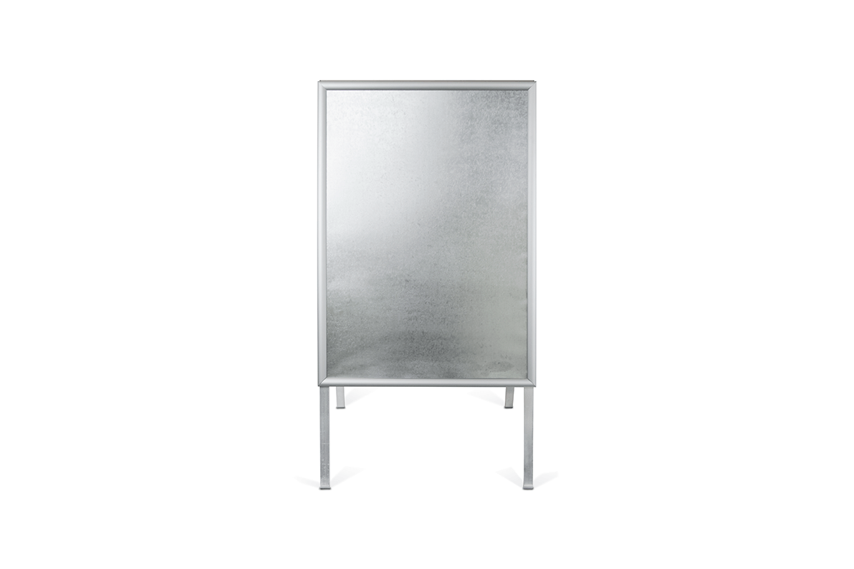 The A-board STEEL is a practical and effective solution for displaying posters and promotional materials in both indoor and outdoor spaces. Its double-sided suunnittelu ensures excellent visibility of your message from both directions of foot traffic. Made of silver anodised aluminium, it features a lightweight yet stable construction with a 25 mm profile. The back panel is made of steel sheet, which significantly enhances the durability and strength of the stand for everyday use. The snap frame system allows for quick and easy poster changes, while matte protective covers shield the graphics from glare and dirt. Non-slip feet ensure stability on various surfaces, and the board folds flat for easy transport and storage. Ideal for placement in front of shops, restaurants, service providers, as well as at trade fairs and promotional events.