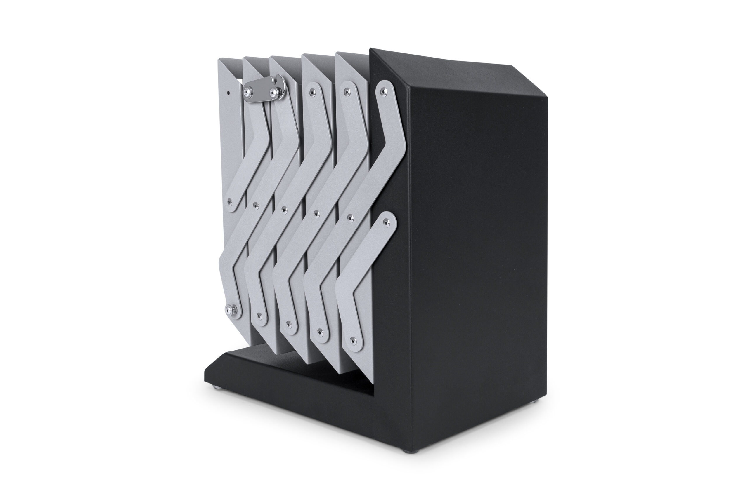 The OKLAHOMA stand is an exceptionally robust and stable display solution made from , ensuring long-lasting durability and resistance to intensive use. Its distinctive give the stand a modern, lightweight look while presenting A4 brochures and catalogues in a clear and attractive way. Thanks to its folding mechanism, the stand can be set up within seconds and requires no tools. When folded, it becomes compact and easy to transport, making it ideal for mobile applications and frequent event use. OKLAHOMA is the perfect choice for users seeking a highly durable, contemporary and mobile brochure stand that ensures a professional presentation of printed materials in any environment.