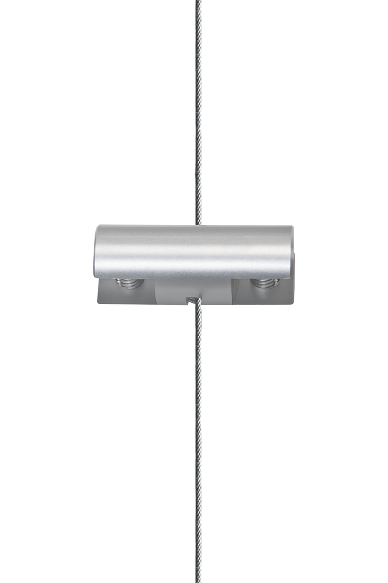 is a modern and elegant solution for hanging advertising and informational signs from the ceiling. The system elements are made of aluminum or chrome-plated brass, depending on chosen option. One part is directly attached to the ceiling, and the other one to the sign. The adjustable length of the link allows adjusting the height of the displayed sign to individual customer’s needs.