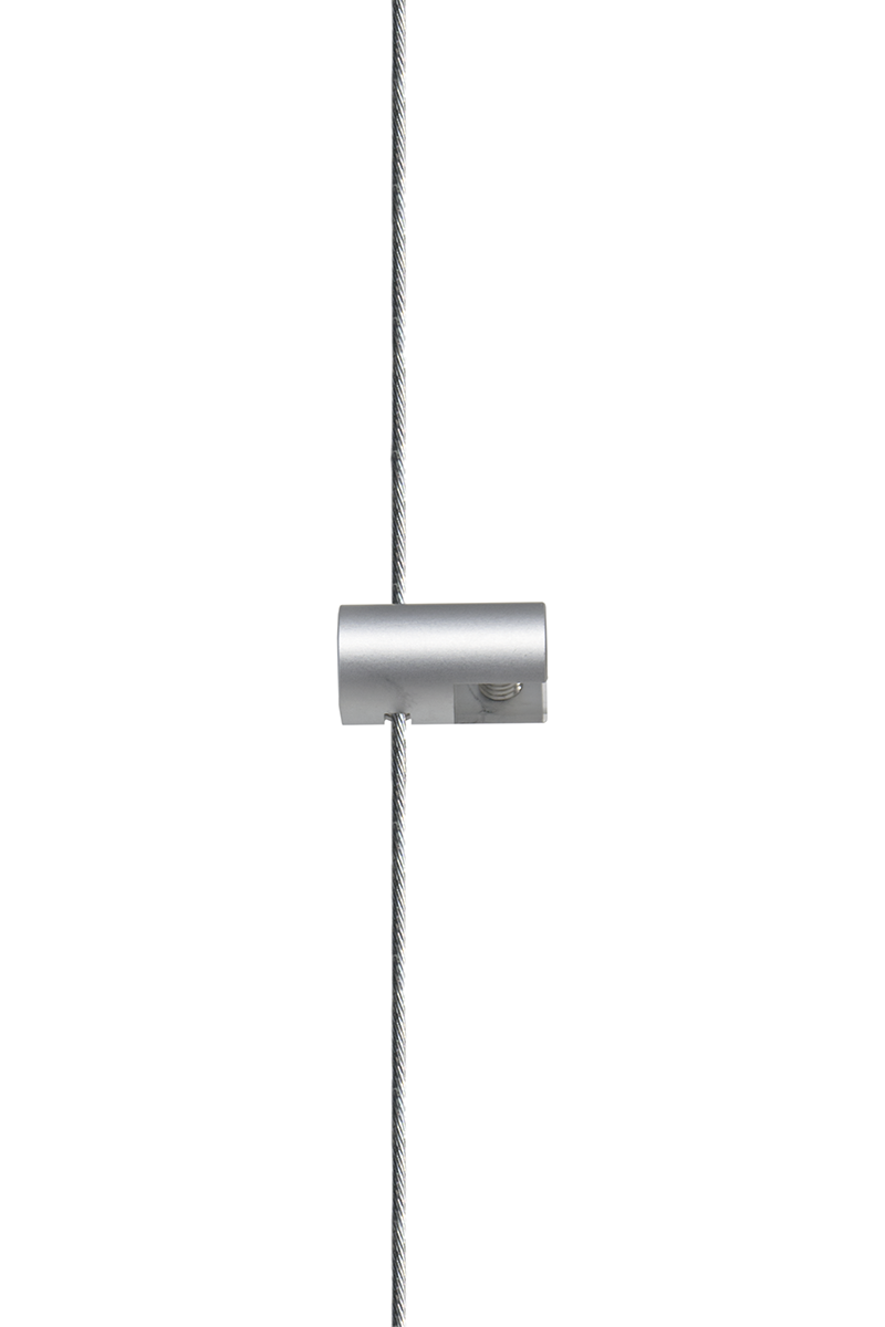is a modern and elegant solution for hanging advertising and informational signs from the ceiling. The system elements are made of aluminum or chrome-plated brass, depending on chosen option. One part is directly attached to the ceiling, and the other one to the sign. The adjustable length of the link allows adjusting the height of the displayed sign to individual customer’s needs.
