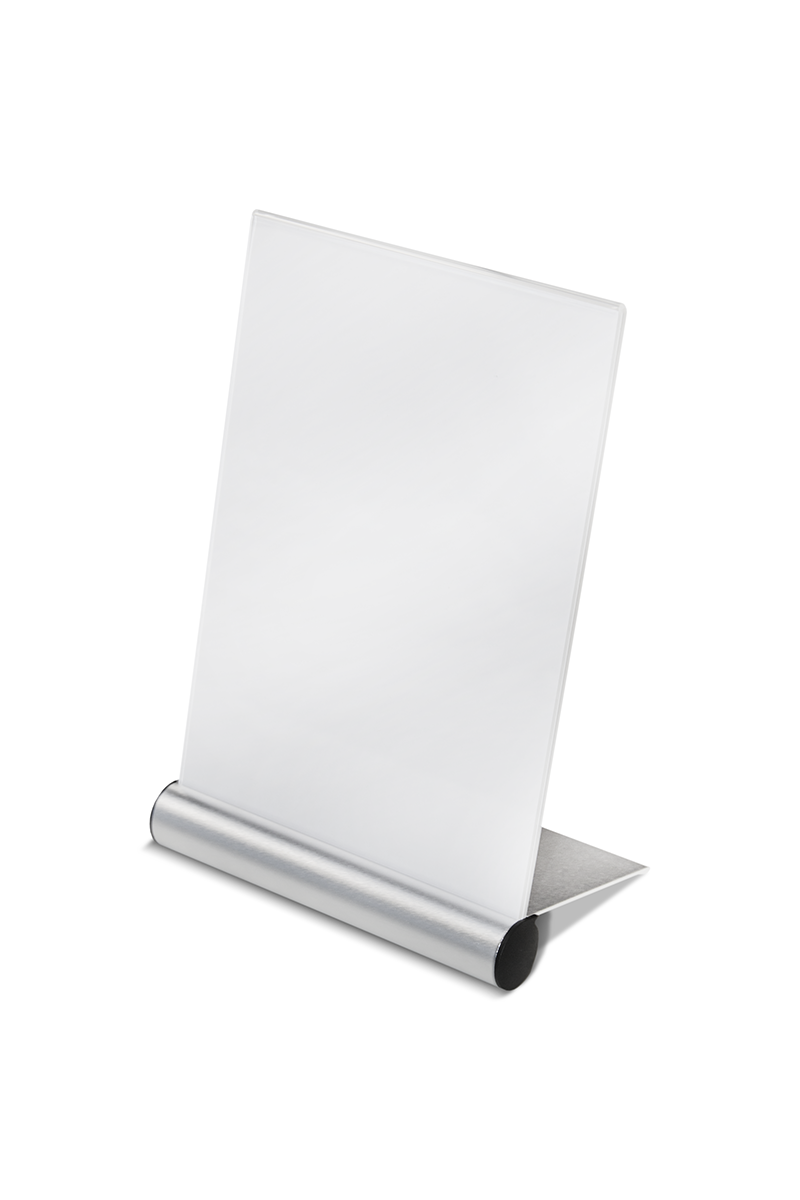with their elegant suunnittelu, are the perfect solution for any desk, counter, or table. The signs are Information can be presented either on one side or both sides. This is an ideal solution for various public spaces, displaying flyers or posters in hotels, restaurants, or offices.
