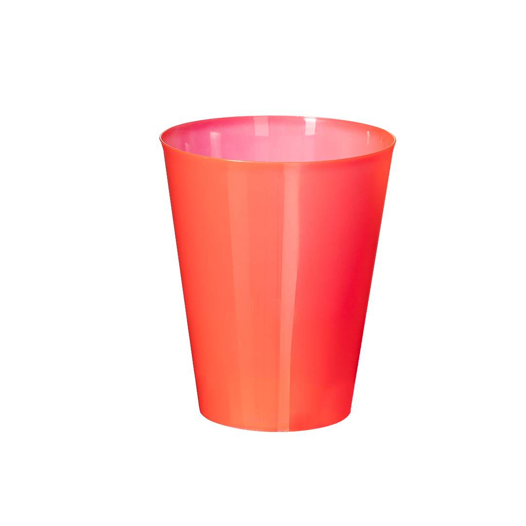 Saatavilla kuudessa huomiota herättävässä, puoliläpinäkyvässä värissä (mukaan lukien punainen, sininen ja vihreä), nämä kupit sopivat täydellisesti brändisi identiteetin mukaiseksi tai käytännölliseksi värikoodaukseksi tapahtumassasi. Käytä eri värejä erottaaksesi eri käyttöalueet, juomatyypit (esim. alkoholijuomat vs. alkoholittomat) tai korostaaksesi tapahtuman eri sponsoreita.