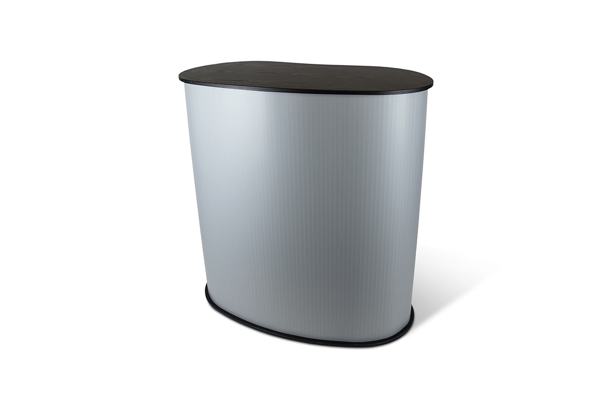 is an extremely lightweight and practical promotional counter, suunnittelued for quick and efficient use during trade fairs, product presentations, tastings and in-store activations. Its key advantage is the . The hook-and-loop fastening ensures secure positioning of the graphic panel and provides a clean, professional appearance. After use, the counter can be collapsed just as quickly, and the complete set — including the is an excellent choice for users seeking a lightweight, simple and fast-assembly promotional counter that maintains stability and a professional look throughout every event.
