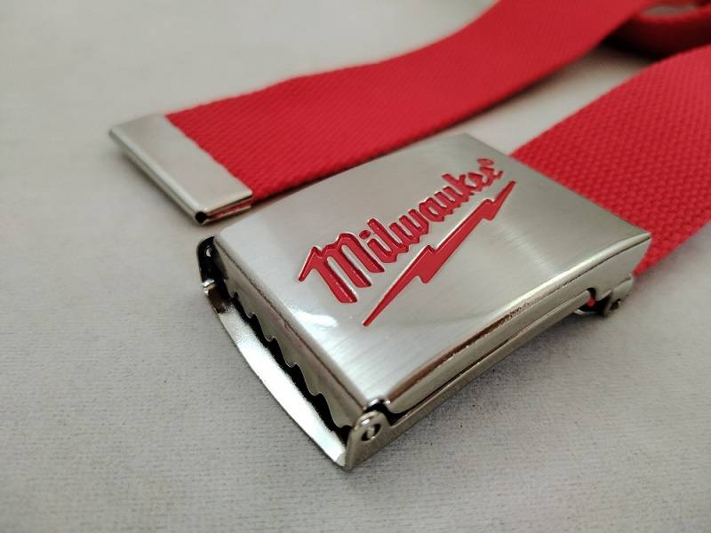Työvaatteiden standardi (metalli): Kuten Milwaukee-esimerkistämme käy ilmi, metallinen läppäsolki tarjoaa ensiluokkaisen tuntuman. Voimme painaa logosi suoraan metalliin ja täyttää sen emalivärillä kestävän ja ammattimaisen lopputuloksen saavuttamiseksi.