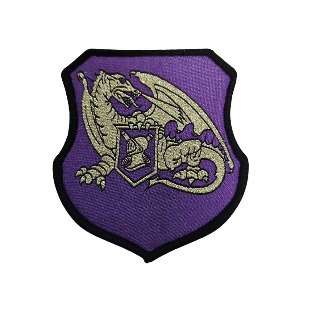 Erinomainen esimerkki ammattitaidostamme on luomamme tunnus Logistiikkapataljoonan reserviläiset. Tässä 80 × 90 mm:n kangasmerkissä on majesteettinen kultainen lohikäärme, joka on kirjailtu syvän violetille pohjalle. Käytimme korkealaatuista metallinen kultainen lanka korostamaan lohikäärmeen monimutkaisia yksityiskohtia, jotka symboloivat voimaa ja erinomaisuutta.