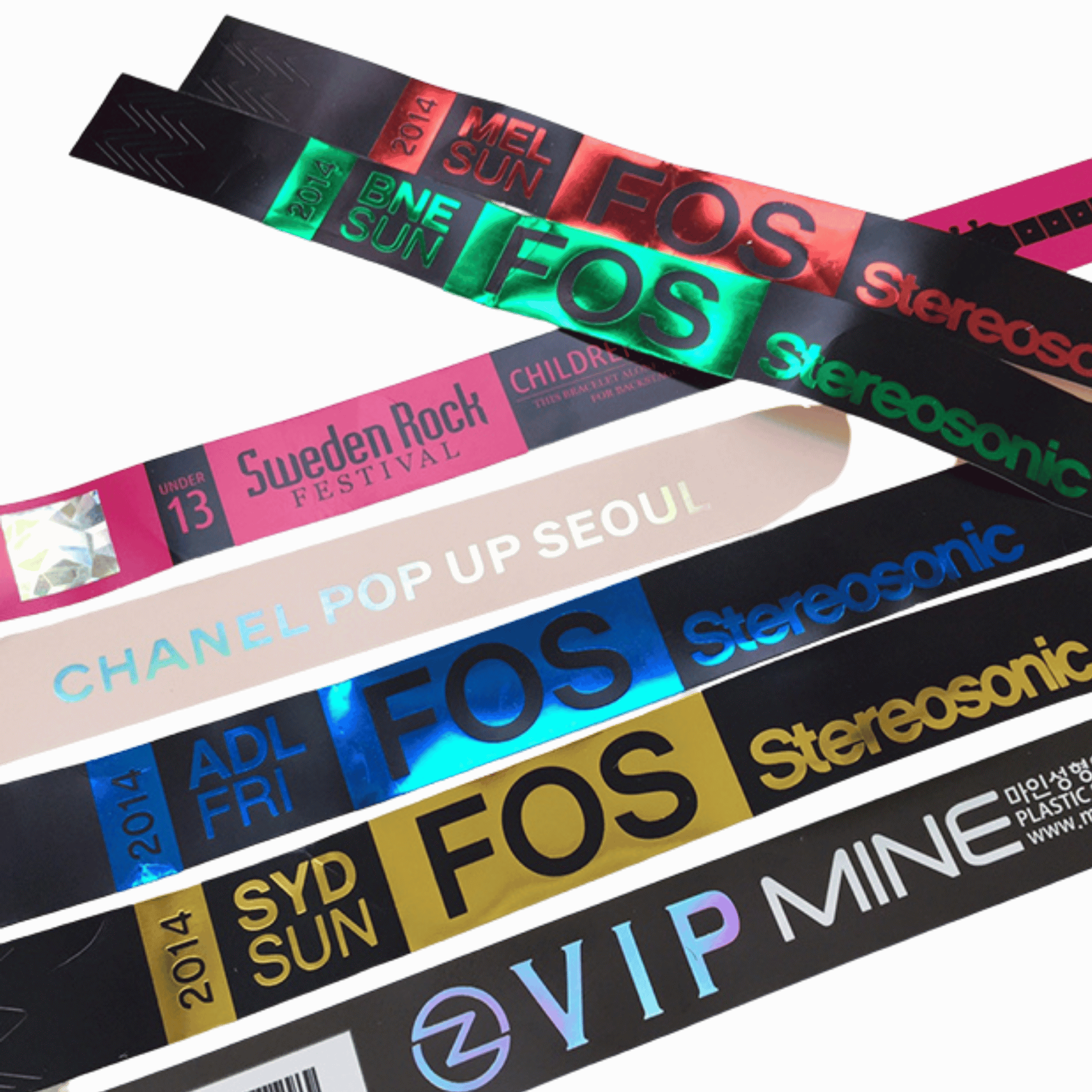 Nämä rannekkeet on suunniteltu korkean profiilin tapahtumiin, klubeille ja festivaaleille, ja niissä voi käyttää ylellisiä metallisia yksityiskohtia – kuten kultaa, hopeaa ja lasifoliota – tai täysin holografisia viimeistelyjä. Sileä pinta yhdistettynä korkean resoluution CMYK-offsetpainatukseen tekee niistä ihanteellisia monimutkaisiin malleihin ja VIP-tunnistukseen. Tyylikkäästä ulkonäöstään huolimatta ne on rakennettu kestämään vettä, hikeä ja aktiivisia ympäristöjä.