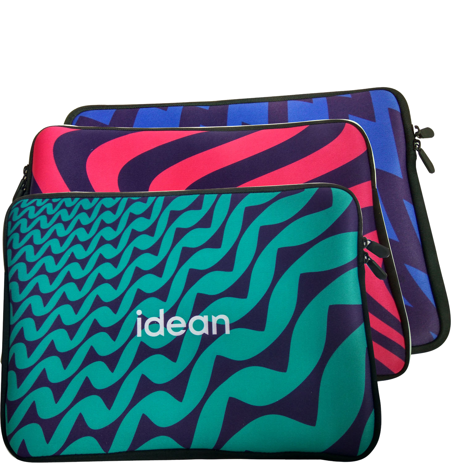 Rajattomat suunnittelumahdollisuudet Tee jokaisen työntekijän kannettavasta tietokoneesta mainostaulu. Toisin kuin nahkalaukkuihin, joihin voi painaa vain pieniä kohokuvioita, neopreeniin voidaan painaa koko pinta eloisilla, monimutkaisilla kuvioilla.