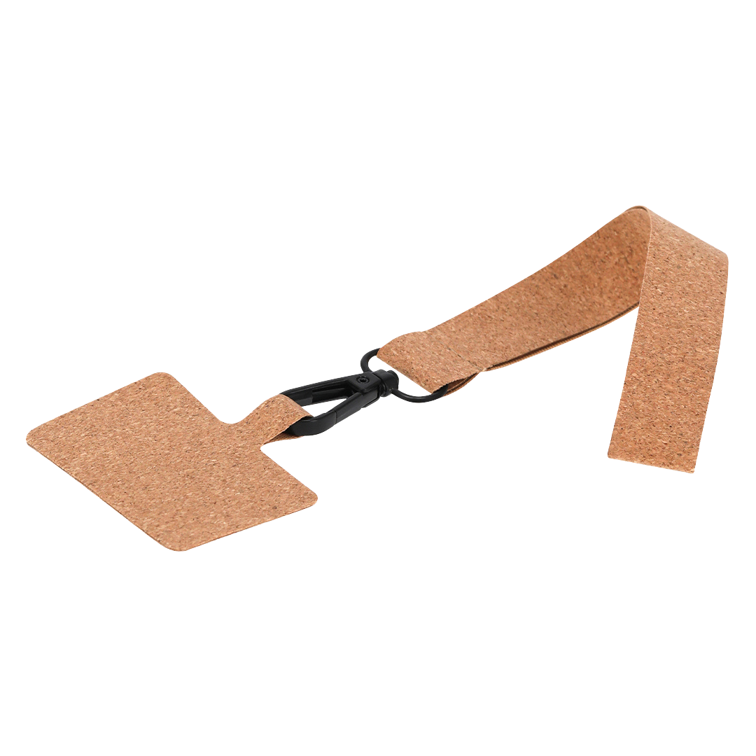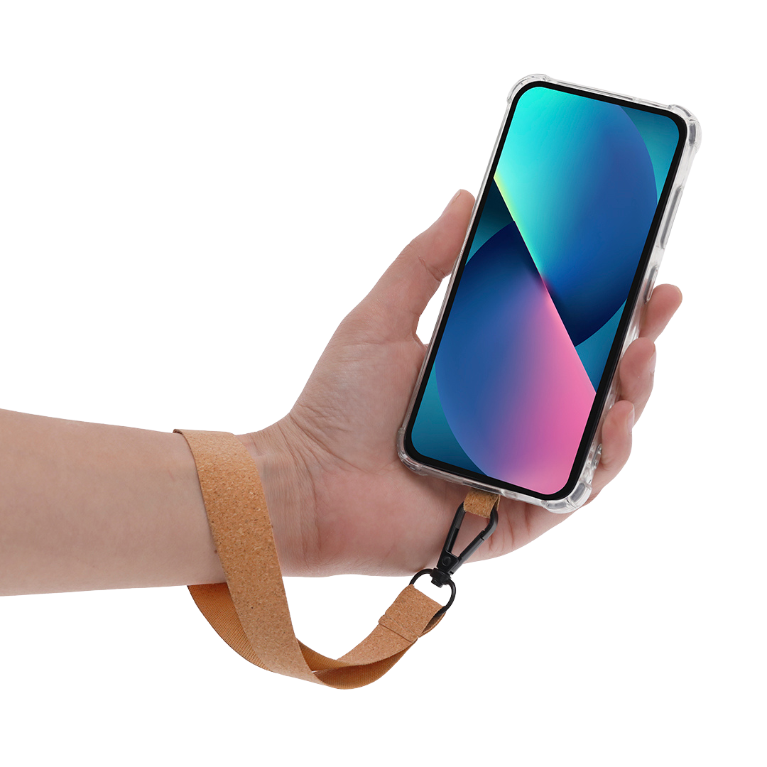 Luonnollisesta, kasvipohjaisesta korkista valmistettu rannehihna on vastuullinen valinta seuraavaan markkinointikampanjaasi tai messulahjakassisi. Mekanismi on ilman painatusta mutta universaali: ohut mutta kestävä korkkipidike liukuu helposti puhelimen ja kotelon väliin ja kiinnittyy rannekkeeseen tukevan, pyörivän metallisen karabiinin avulla.