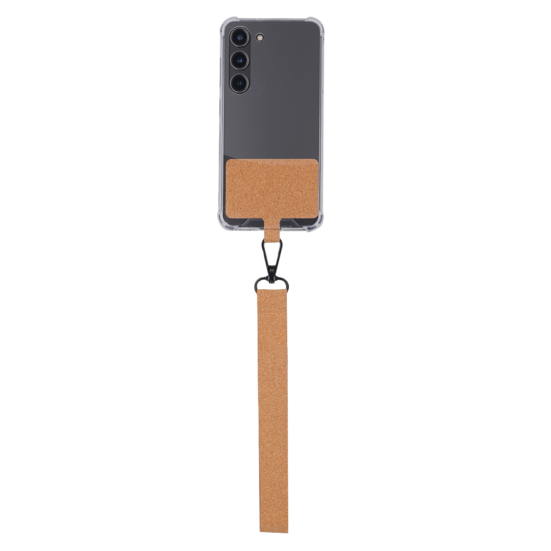 Materiaali: Luonnollinen ja kestävä korkkiranneke yhteensopivalla puhelinpidikkeen kielekkeellä.