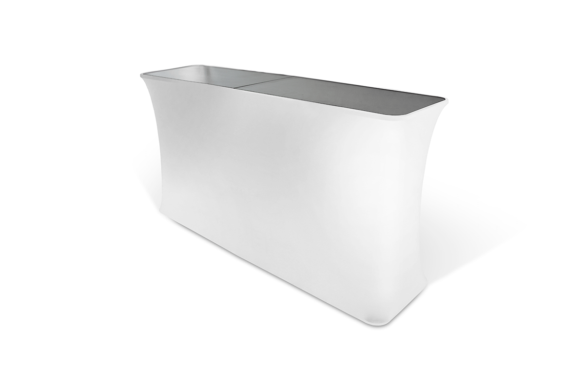 The FABRIC RECTANGULAR Counter is a modern and highly functional promotional solution suunnittelued for trade fairs, product presentations, tastings and point-of-sale activations. Its offers generous workspace, making it an ideal choice for presentations that require more display surface or direct customer interaction. , providing excellent stability while keeping the counter lightweight and easy to handle. Both the top and the base fold flat, making transport and storage exceptionally convenient. , ensuring a perfectly smooth, wrinkle-free and elegant appearance. The graphic can be washed and reused, allowing the counter to maintain a fresh, high-quality look over time. The FABRIC RECTANGULAR Counter is the perfect choice for users seeking a wide, stable and visually impressive promotional counter that supports professional, modern and high-quality brand presentations.