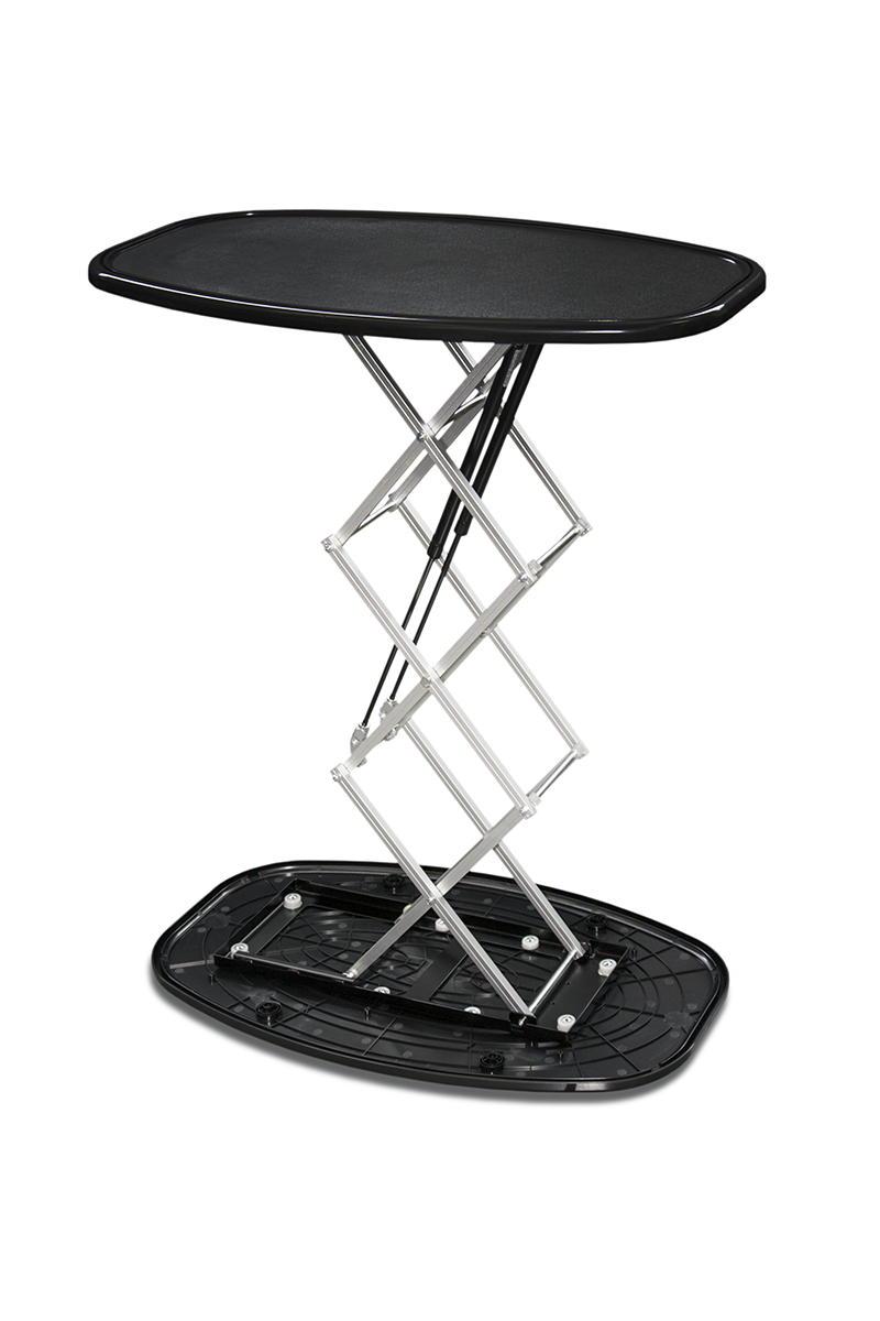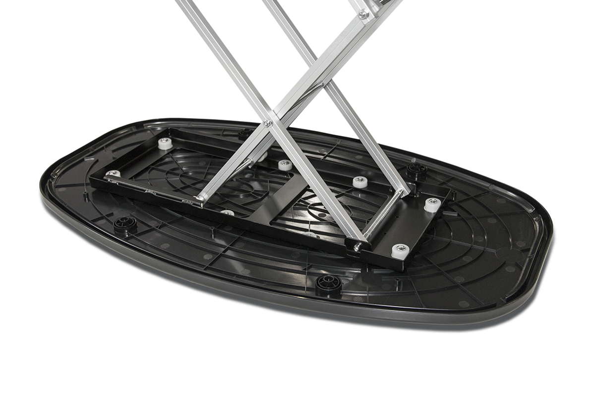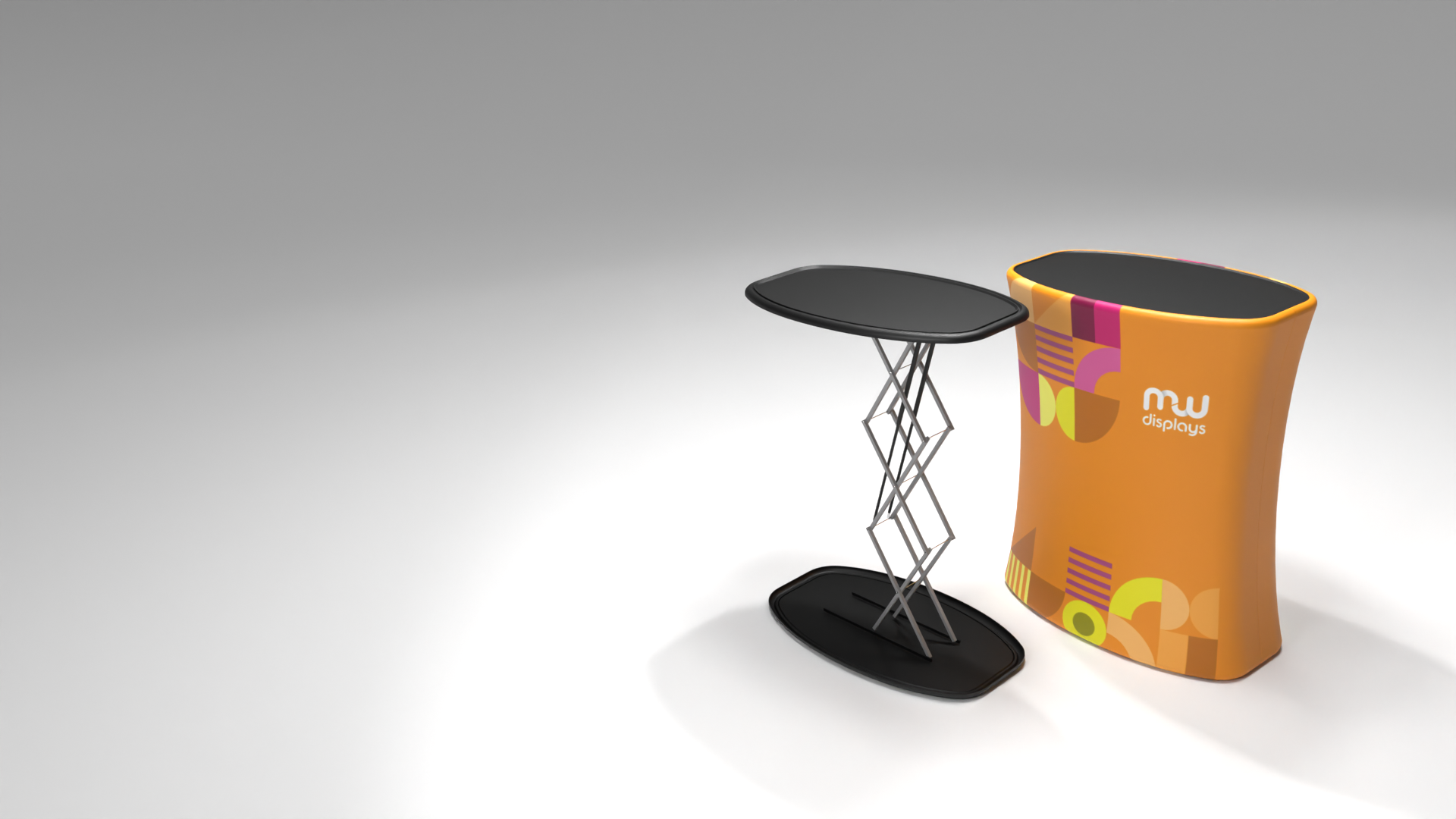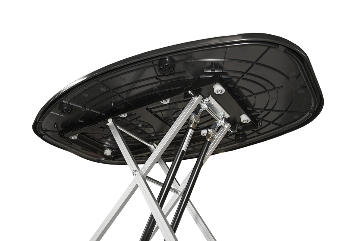 is a modern promotional counter that combines elegance and functionality with maximum user convenience. Thanks to the use of pneumatic actuators, it unfolds automatically within just a few seconds – effortlessly and without the need for any tools. The frame is made of lightweight yet durable aluminum, combined with a top and base made of PVC, ensuring stability and long-lasting performance. The graphic, printed on textile material, is mounted with a silicone strip, making installation and replacement quick, easy, and always neat. The textile surface also allows for backlighting of the print, further enhancing the visual impact and effectively attracting the attention of the audience. When folded, the counter takes up very little space, and the ensures carrying comfort, safe storage, and reliable protection against damage during frequent transportation. It is the perfect solution for those who value modern technology, mobility, and impressive presentation in any environment.