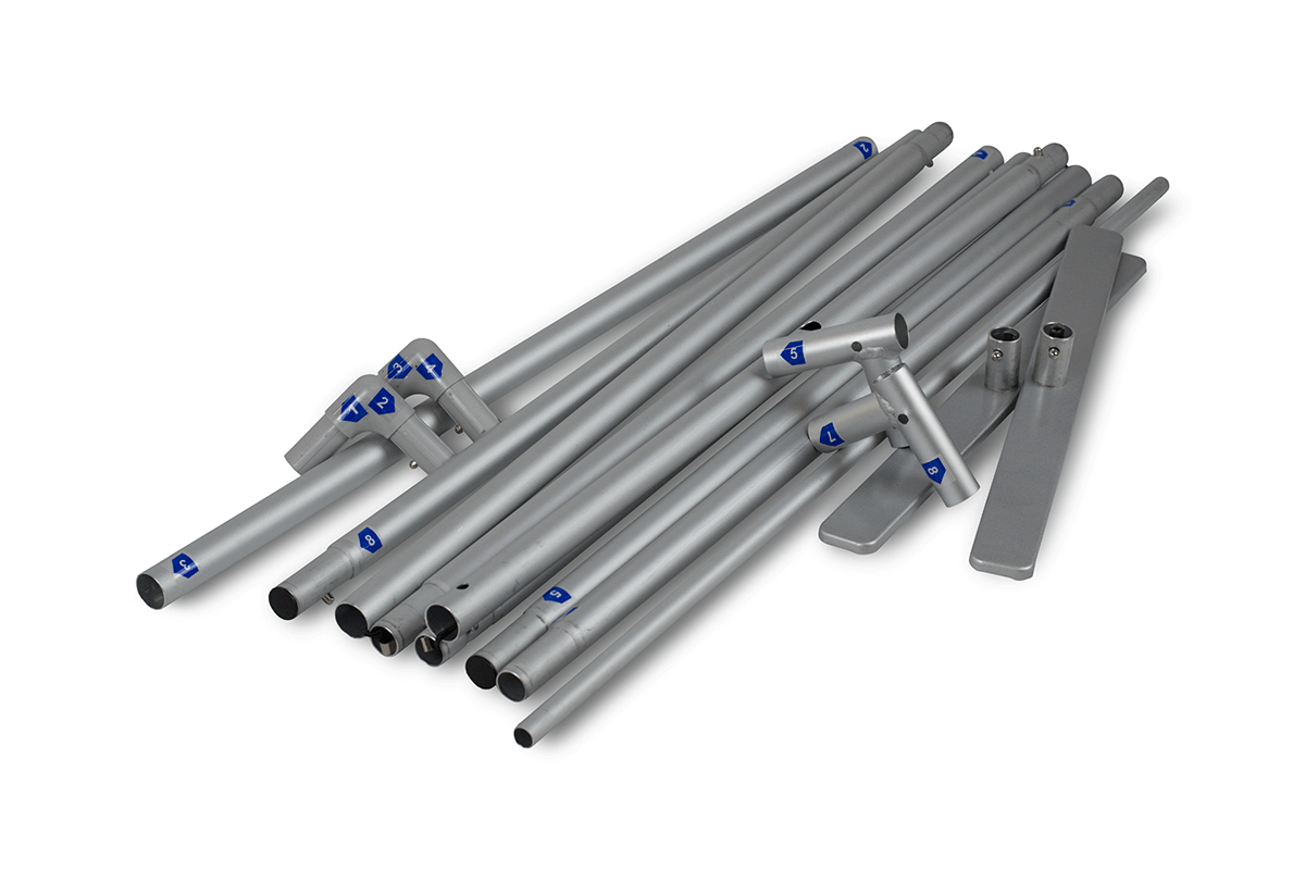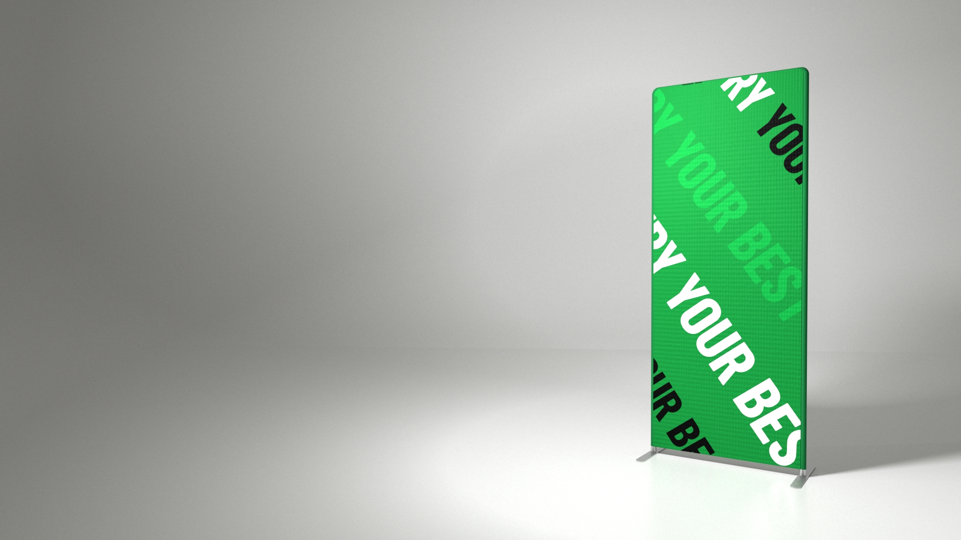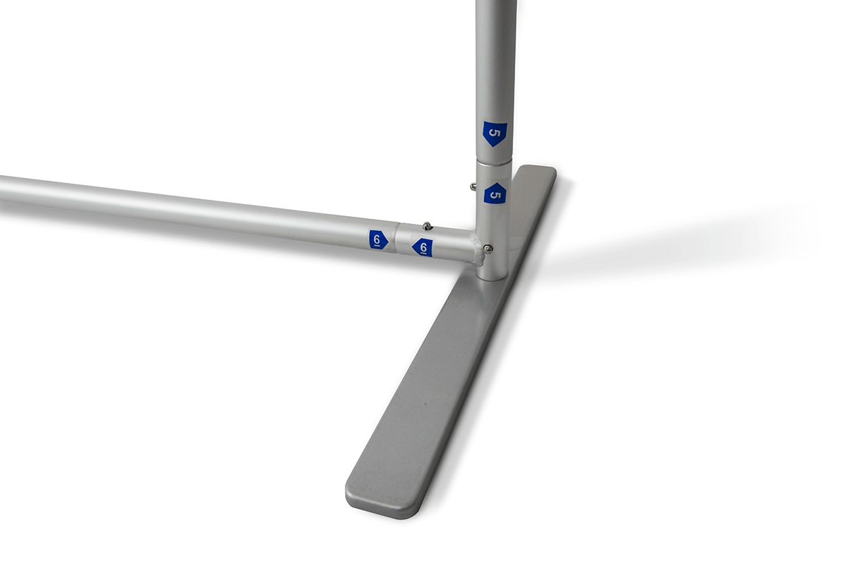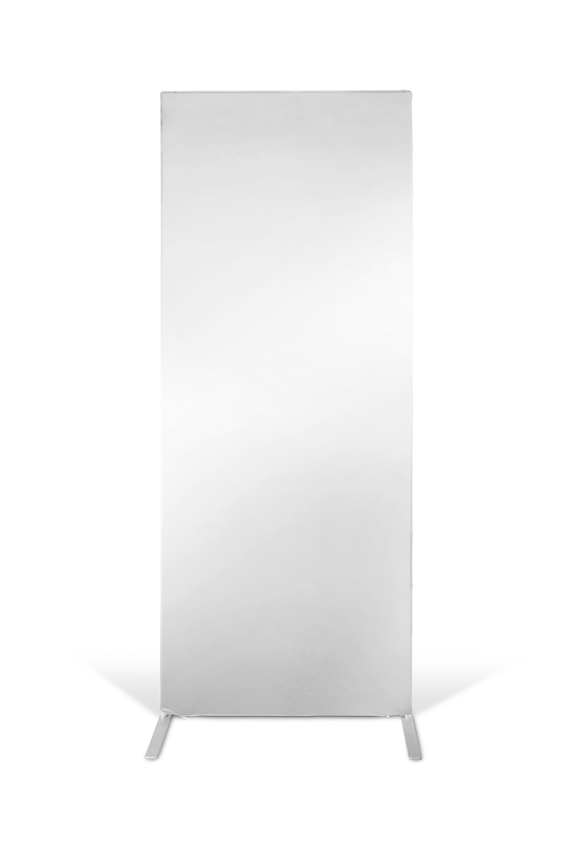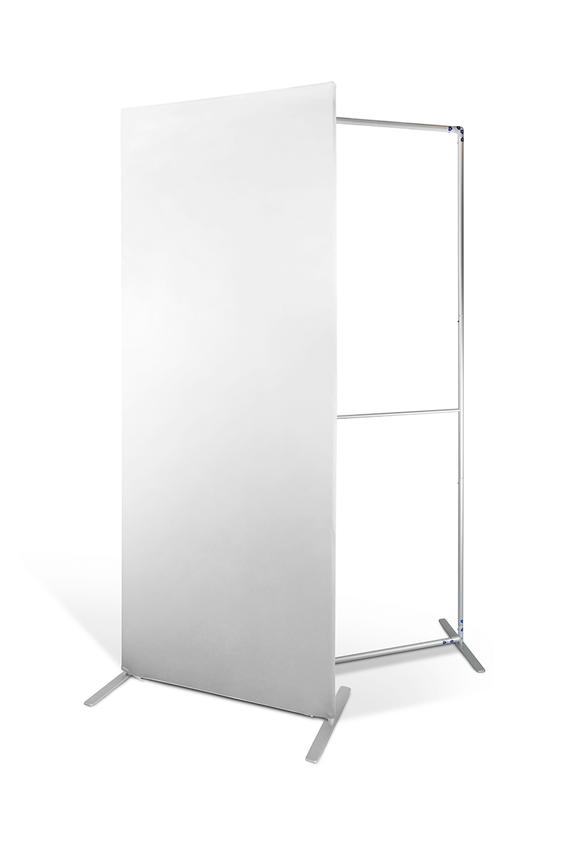 that ensures both lightness and a professional presentation. The textile graphic is stretched over the structure and closed with a , making assembly simple, intuitive and completely tool-free. The structure is supported by After the event, the FABRIC ROLLUP can be disassembled quickly, and all components fit into the The FABRIC ROLLUP is an excellent choice for users seeking a lightweight, mobile and easy-to-assemble system that provides an elegant textile graphic presentation and stable positioning thanks to its stabilising feet.