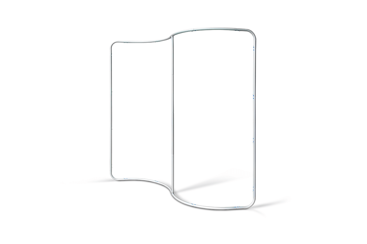 FABRIC WALL S is an elegant textile display built on a lightweight yet stable aluminium tube system with a diameter. Its distinctive S-shaped, flowing form adds a dynamic and eye-catching character to any presentation, making it an excellent choice for trade fairs, events, promotional zones and photo backdrops. , ensuring a smooth, seamless and professional display surface. All frame elements are clearly numbered, allowing for FABRIC WALL S is an ideal solution for users who value a lightweight, durable and stylishly contoured textile wall that instantly attracts attention and enhances the professional appearance of any presentation.