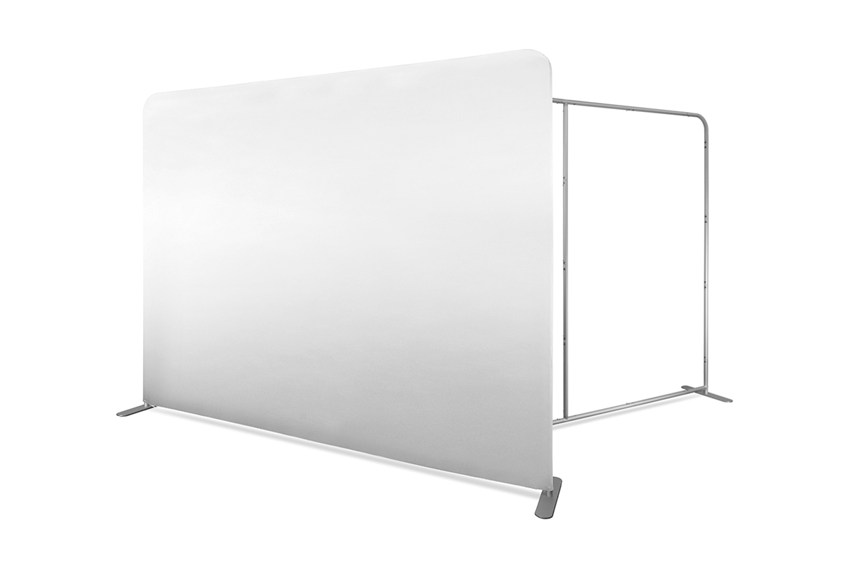 , suunnittelued to create clean, aesthetic, and professional advertising presentations. The textile graphic is Numbered frame components make assembly fast, intuitive, and completely tool-free. , ideal for repeated use at trade fairs, events, and promotional presentations. The entire system is packed in a is a dependable choice for anyone seeking a durable, visually attractive, and user-friendly textile display wall.