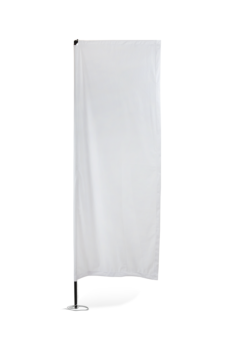 . This suunnittelu ensures that the graphic remains perfectly visible and legible, even without wind – the flag always looks professional and eye-catching. is the perfect choice for companies that want to present their brand in a simple, classic, and highly effective way.
