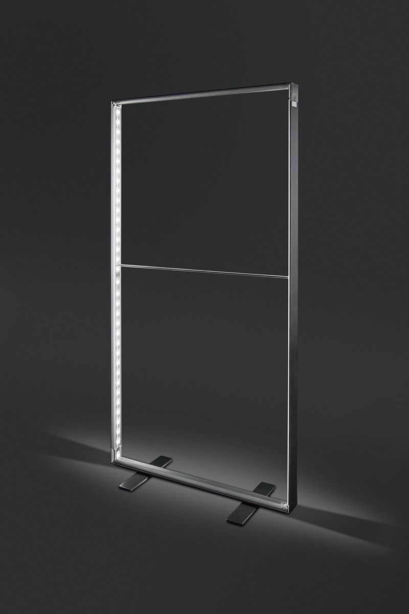 FOLD 85 Lightbox SEG is a modern and functional display solution, ideal for trade fairs, events, as well as retail and office environments. Thanks to LED backlighting, the graphics are presented in a highly impactful way on both sides, attracting attention and enhancing the visibility of your advertising message. The key advantage of the system is its innovative folding construction, which allows for quick assembly and disassembly without the need for tools. The mechanism, based on hinged connections, enables intuitive setup of the lightbox within just a few moments, significantly improving installation efficiency, especially during events requiring fast setup. The double-sided model is suunnittelued for simultaneous display of graphics on both sides, making it an ideal solution for open spaces and high-traffic areas. The LED lighting system is based on edge-lit technology, with diodes positioned within the frame profiles. This solution ensures even light distribution across both graphics and high color intensity while maintaining energy efficiency. The structure is made of aluminum, ensuring durability and stability while remaining lightweight. The SEG textile graphic with a silicone edge allows for quick installation and perfectly tensioned fabric without visible wrinkles.