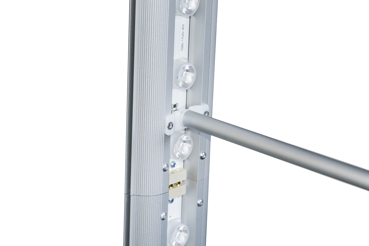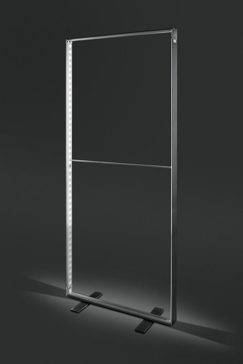 FOLD 85 Lightbox SEG is a modern and functional display solution, ideal for trade fairs, events, as well as retail and office environments. Thanks to LED backlighting, the graphics are presented in a highly impactful way on both sides, attracting attention and enhancing the visibility of your advertising message. The key advantage of the system is its innovative folding construction, which allows for quick assembly and disassembly without the need for tools. The mechanism, based on hinged connections, enables intuitive setup of the lightbox within just a few moments, significantly improving installation efficiency, especially during events requiring fast setup. The double-sided model is suunnittelued for simultaneous display of graphics on both sides, making it an ideal solution for open spaces and high-traffic areas. The LED lighting system is based on edge-lit technology, with diodes positioned within the frame profiles. This solution ensures even light distribution across both graphics and high color intensity while maintaining energy efficiency. The structure is made of aluminum, ensuring durability and stability while remaining lightweight. The SEG textile graphic with a silicone edge allows for quick installation and perfectly tensioned fabric without visible wrinkles.
