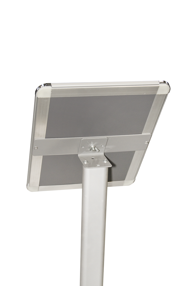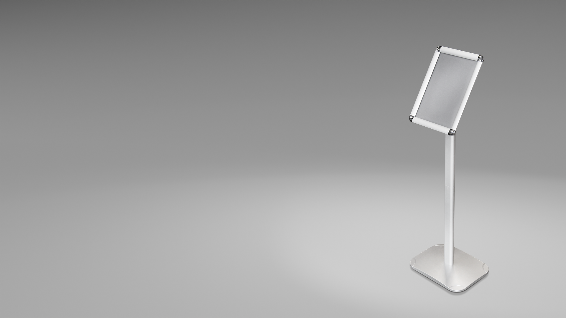 and other printed materials. It is an excellent choice for hotels, restaurants, office buildings, event spaces and all places where clear and stylish communication is essential. (open–insert–close), allowing the poster to be replaced within seconds without removing the frame from the stand. The frame can be positioned , providing a premium finish, durability and a professional look in any interior. Stability is ensured by a