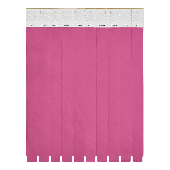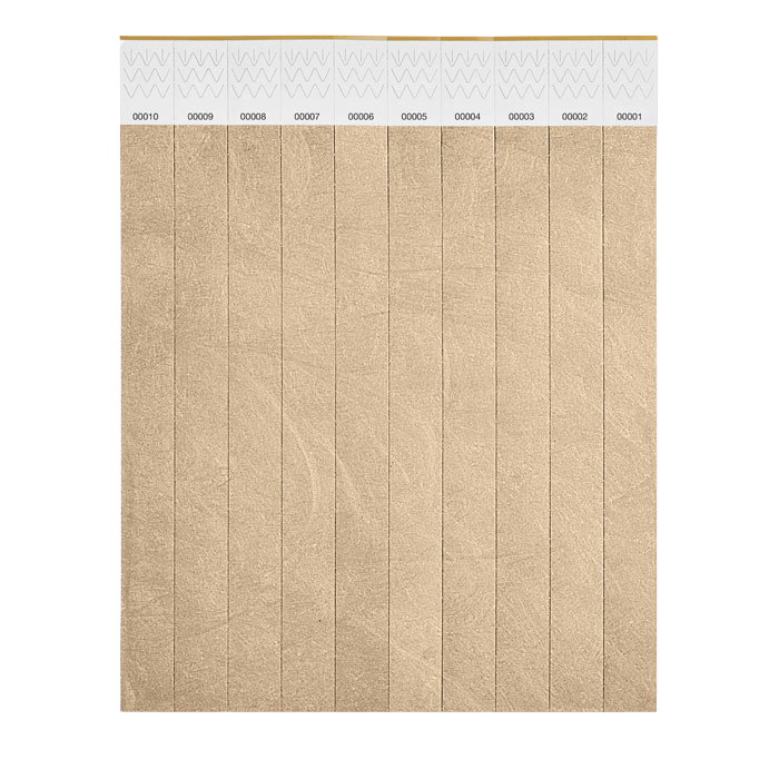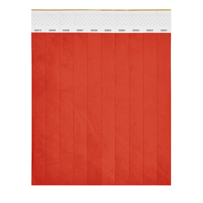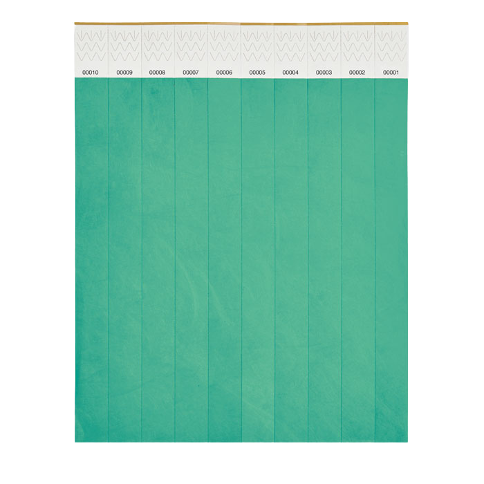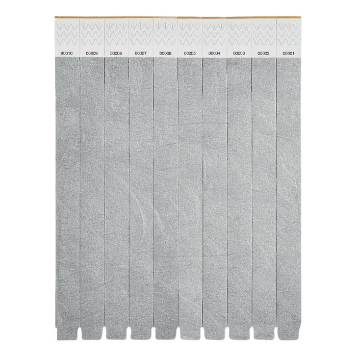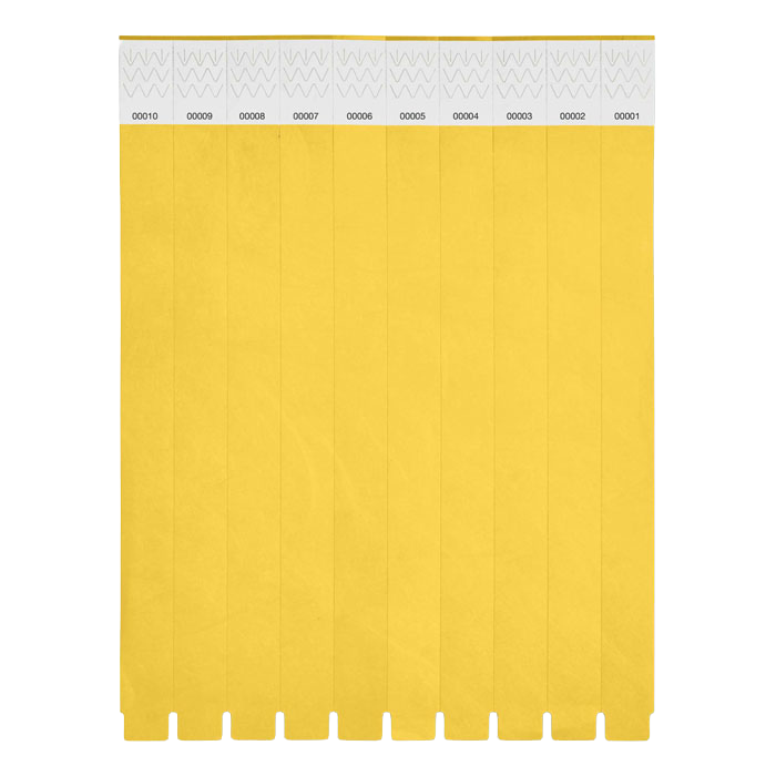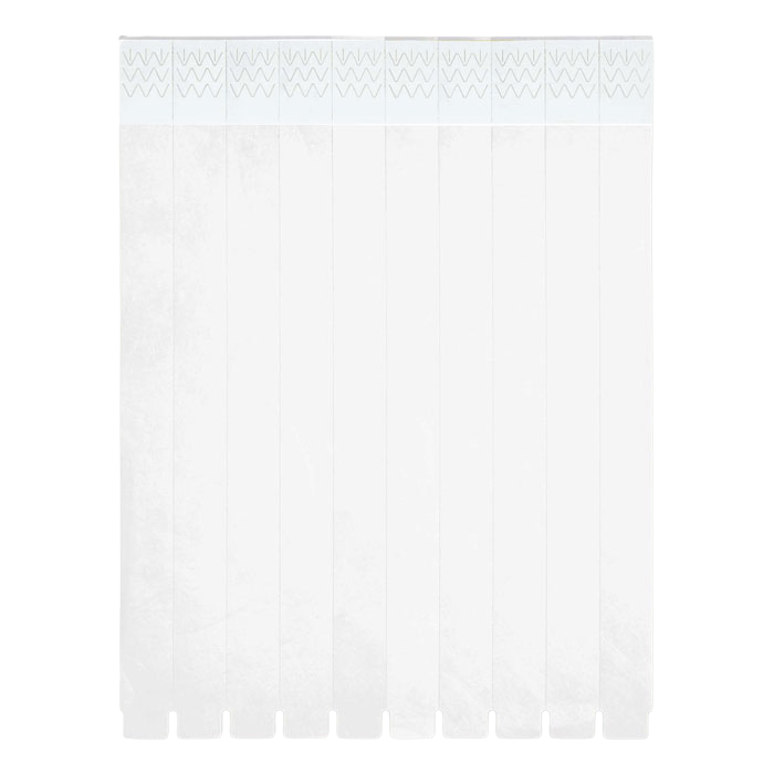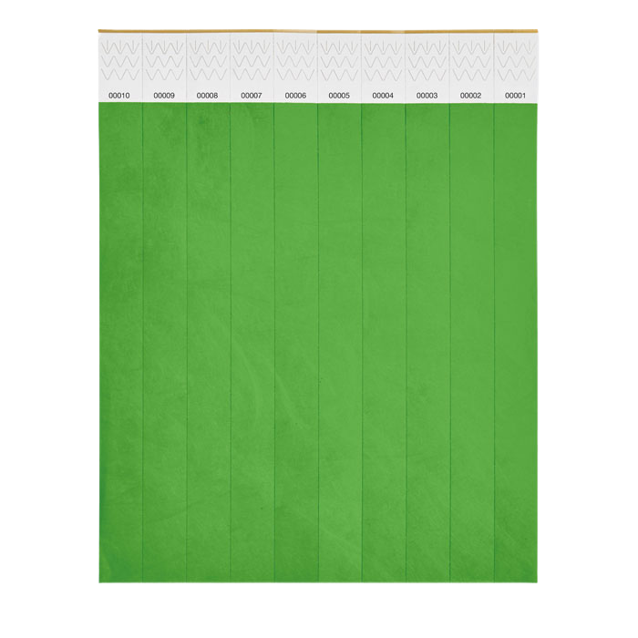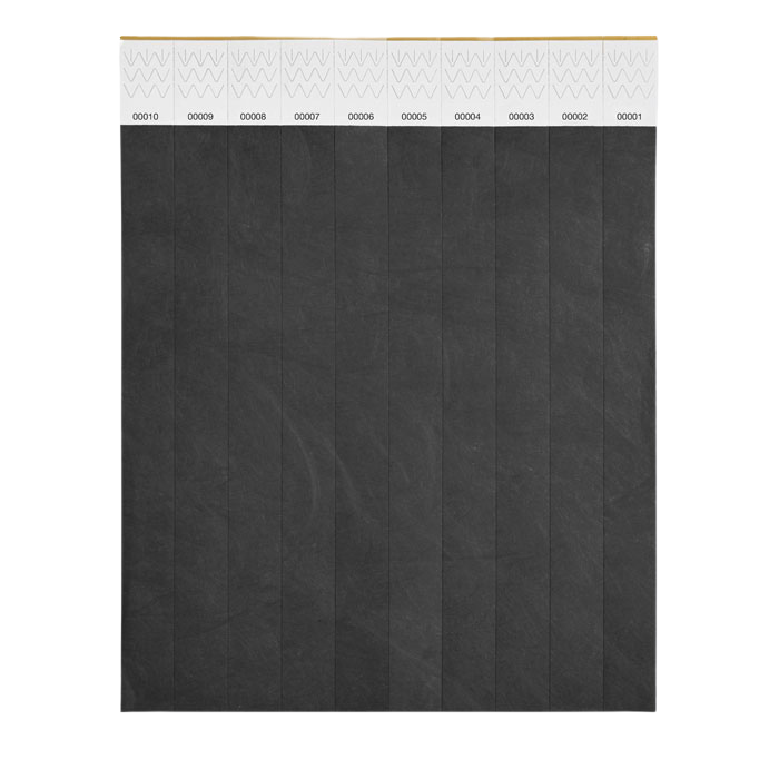 Rannekkeet on valmistettu aidosta DuPont™ Tyvek® -materiaalista, ja ne ovat vedenpitäviä, repeämättömiä ja niissä on turvallinen, väärentämätön tarrakiinnitys. Jokaisessa rannekkeessa on yksilöllinen, esipainettu sarjanumero petosten estämiseksi ja vieraiden laskemisen yksinkertaistamiseksi.