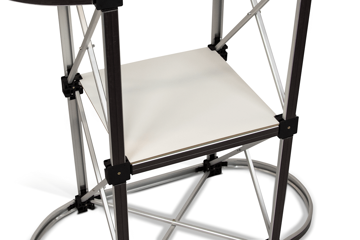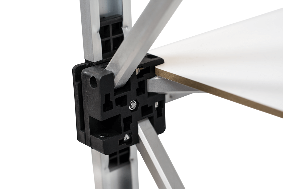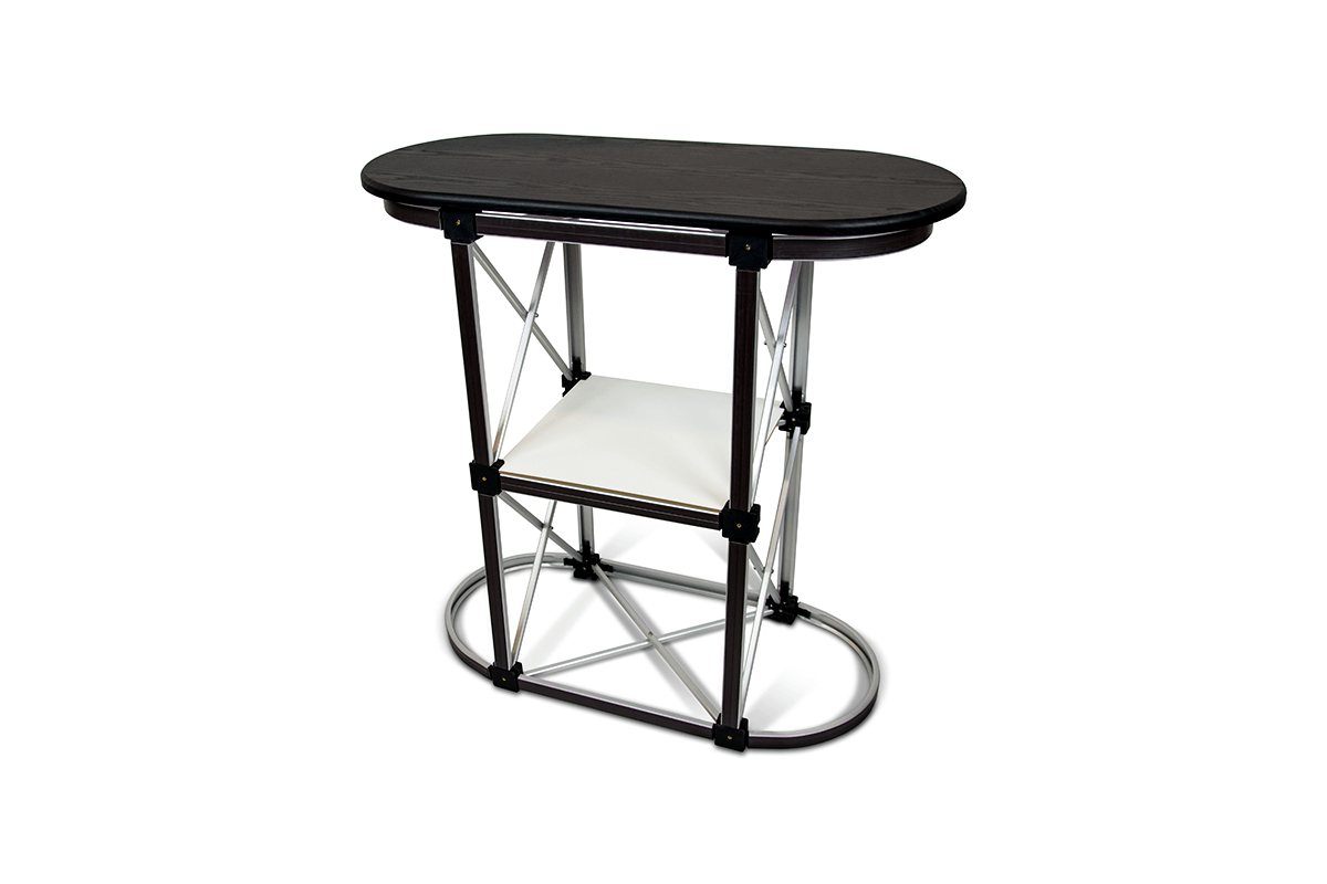. Its simple assembly makes it the perfect solution for those seeking a mobile and convenient display counter. provides space for product presentation or marketing materials. Graphics are attached to the frame using , making it an excellent choice for trade fairs, conferences, and promotional campaigns.
