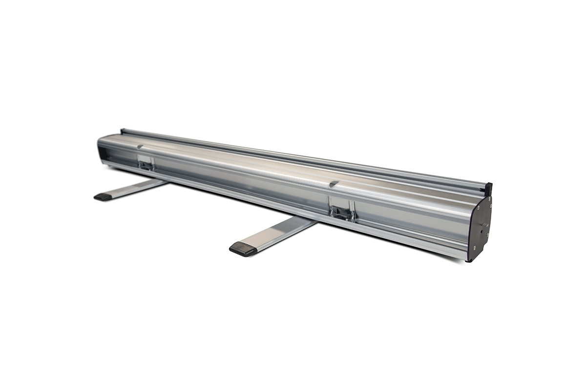 is suunnittelued for users who expect durability and maximum stability. Its housing, made of , ensuring the rollup remains rigid and secure even during frequent presentations. Aesthetic refinements such as is a robust, stylish display solution created for those who value stability, reliability, and attention to detail.