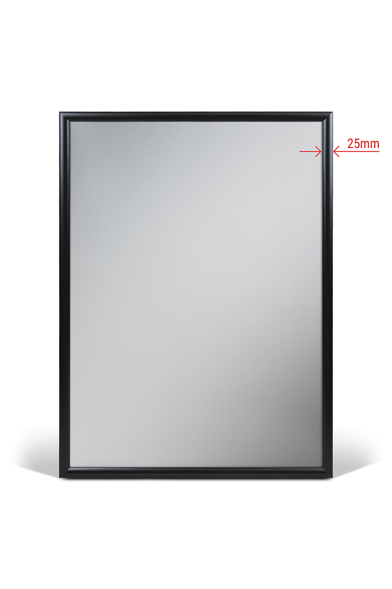 is a functional and visually appealing solution for displaying posters, announcements, and informational materials. Made from high-quality black anodized aluminum, it features a 25 mm profile that ensures both a modern appearance and sturdy construction. The snap-open system allows for quick and easy content replacement without removing the frame from the wall. An anti-glare protective cover shields the graphic from light reflections and mechanical damage. The frame can be mounted in either portrait or landscape orientation, offering flexible installation options. Perfect for offices, retail spaces, public buildings, and any environment where professional presentation of content is essential.