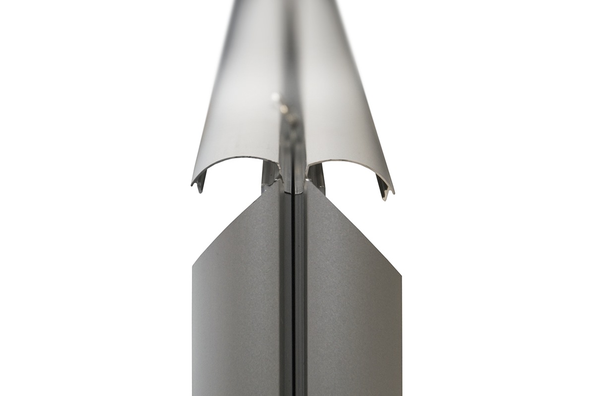is an ideal solution for displaying promotional and informational materials in spaces where visibility from both sides is important. Made of high-quality silver anodized aluminum with a 25 mm profile, it combines elegant suunnittelu with durability and functionality. The snap-open system allows for quick and easy poster replacement on both sides, without removing the frame. Anti-glare protective covers shield the graphics from light reflections and mechanical damage. The frame is suitable for vertical or horizontal mounting, and can be suspended or installed on double-sided display structures. Perfect for shopping centers, storefronts, lobbies, trade shows, and any space where content needs to be visible from both sides.
