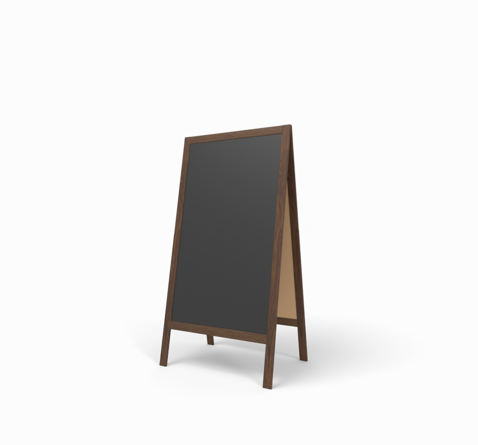 is a practical and versatile promotional stand suunnittelued for displaying menus, daily offers, promotions or short messages. It is commonly used in front of restaurants, cafés, shops and at events where clear and flexible communication is required. ensures stable positioning while allowing quick setup and easy storage. On both sides there is a When folded, the board takes up minimal space, which makes it convenient to store and move. Its simple suunnittelu and functionality make the Wooden Chalkboard A-Board a reliable and effective visual communication tool for everyday use.