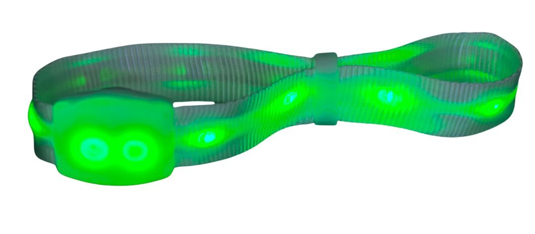 Questo modello è dotato di un cinturino in nylon morbido e resistente con un modulo LED luminoso telecomandato. Il cinturino in tessuto è completamente personalizzabile con una stampa a sublimazione a colori vivaci, che lo rende ideale per loghi dettagliati o branding di eventi complessi.