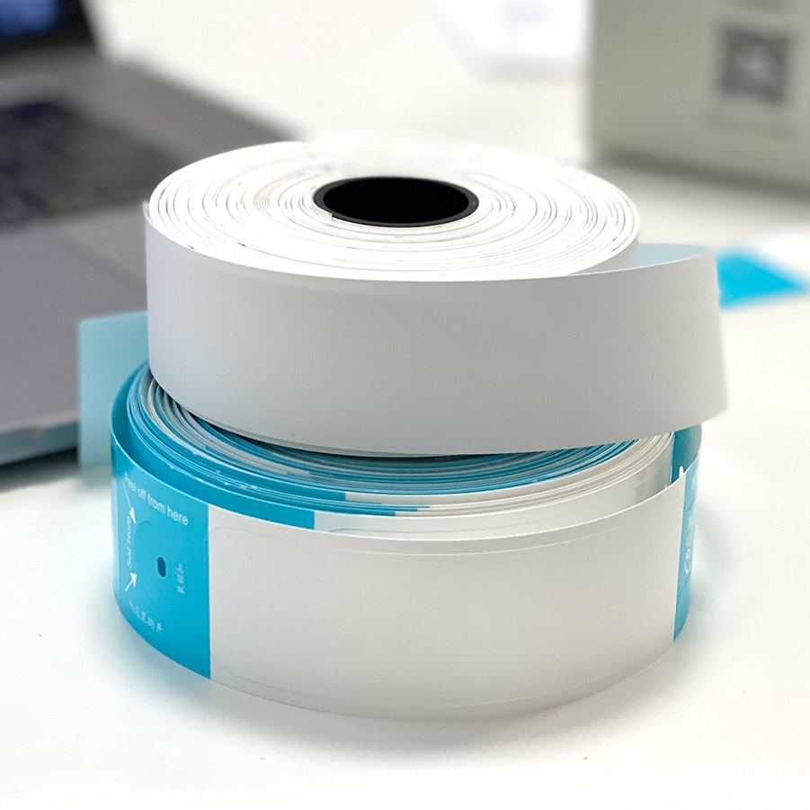 Atsparumas dėmėms: Aukštos kokybės polipropileno plėvelė užfiksuoja terminį atspaudą, todėl paciento duomenys išlieka įskaitomi net po sąlyčio su vandeniu, alkoholiu ar rankų dezinfekavimo priemonėmis.