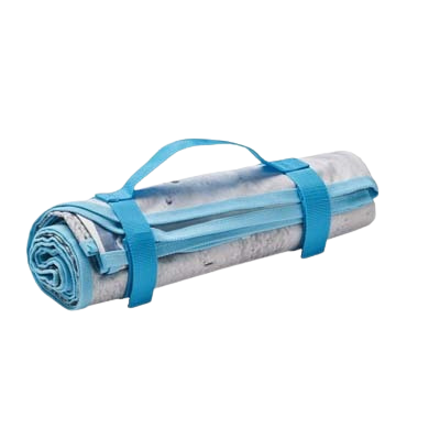 Pārnesamība: Iekļauts iešūts PP lentass rokturis (aptuveni 2,5 x 50 cm) ar āķa un cilpas aizdari ērtai ripināšanai un pārnēsāšanai.