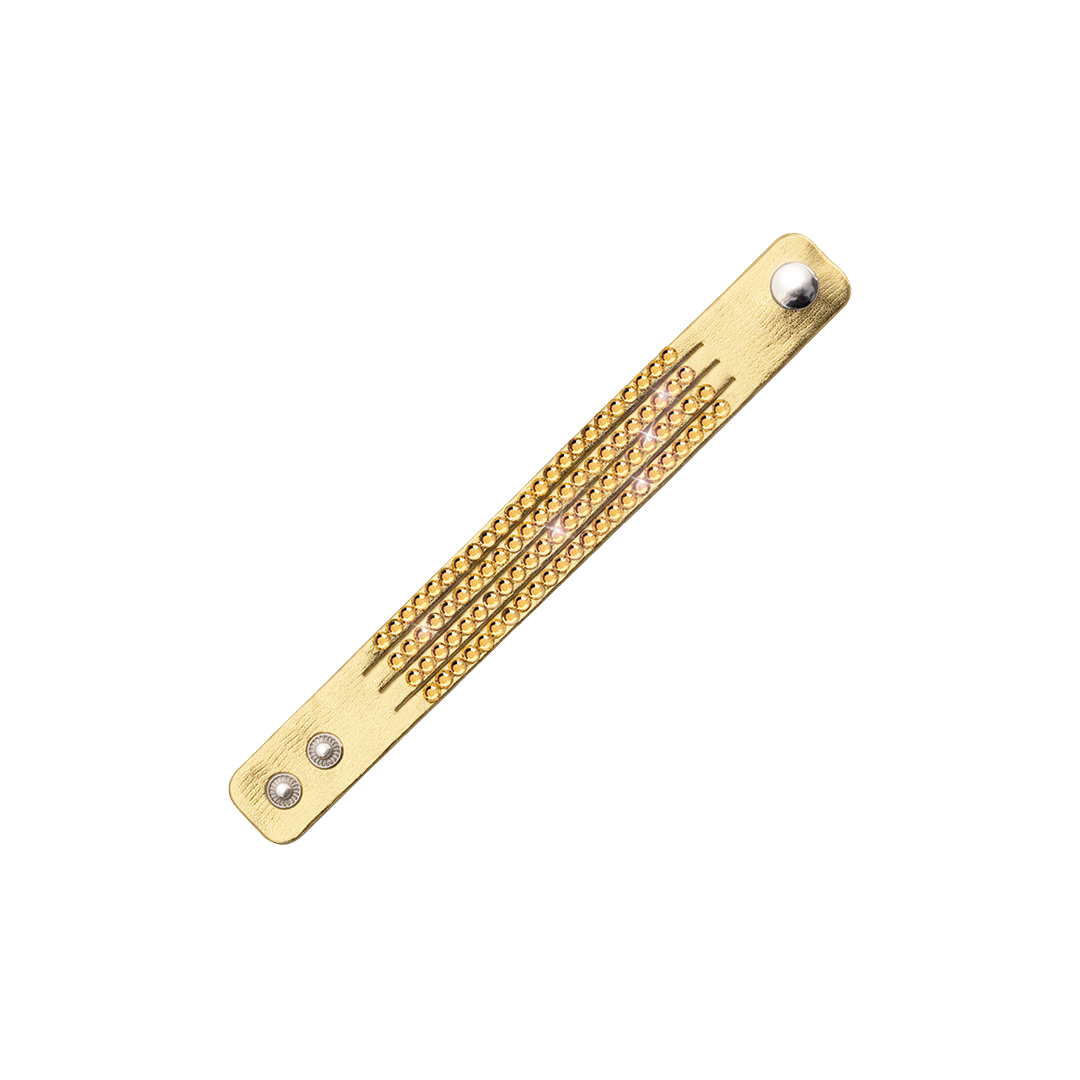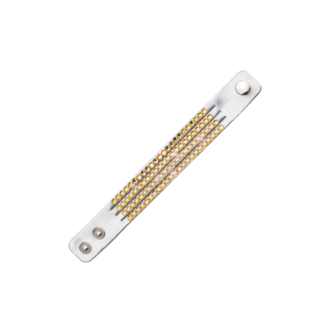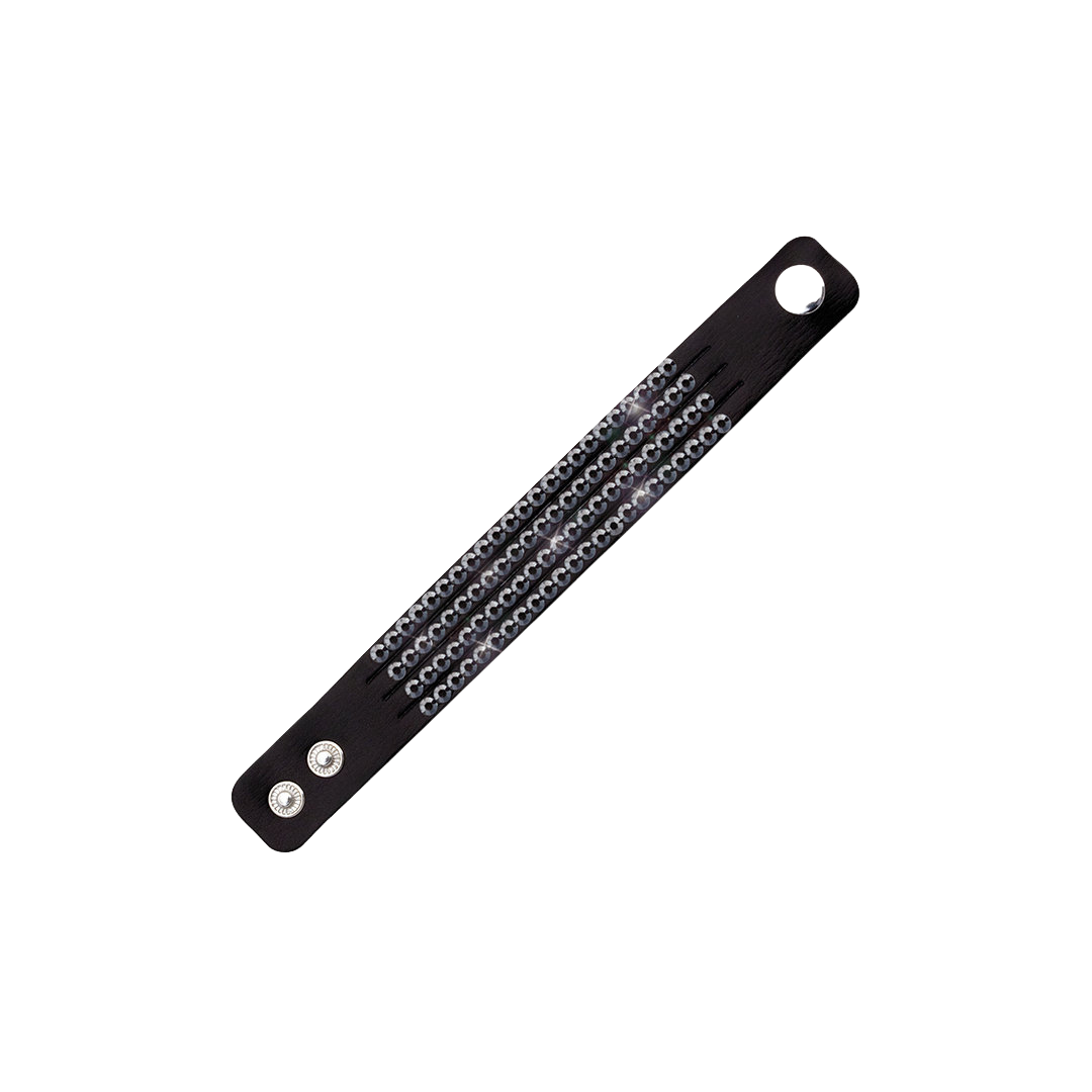 Regulējamā siksniņa ar spiedpogu ir piemērota dažādiem plaukstas locītavu izmēriem. Aproce ir pieejama trīs elegantos toņos: zelta, melnā un sudraba – katrs no tiem savā veidā izceļ valkātāja stilu un nodrošina skaistu fonu mirdzošajiem akmeņiem.
