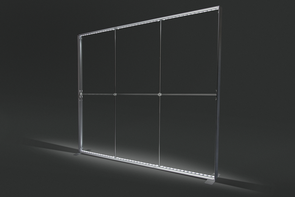 , designed to attract attention from afar and ensure excellent visibility of your graphics. The construction is made of an , which guarantees exceptional stability and durability, even during intensive use. evenly illuminates the graphics, creating an impressive and professional effect. The (silicone edge graphic) allows for quick and effortless installation, while ensuring a perfectly tensioned surface on both sides of the wall. , and the folding feet make it easy to position the structure stably. The set is complemented by a , highly resistant to damage, which protects all components during frequent transportation and storage.