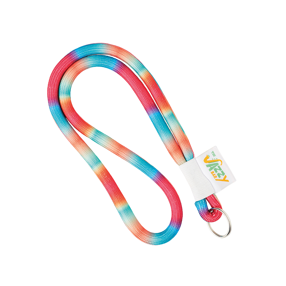 Den 90 cm lange polyestersnoren starter som hvit og trykkes fullt ut med designet ditt ved hjelp av fargesublimering. Denne metoden er perfekt for komplekse mønstre i full farge eller repeterende logoer, men vær oppmerksom på at presis logoplassering ikke kan garanteres på snoren.