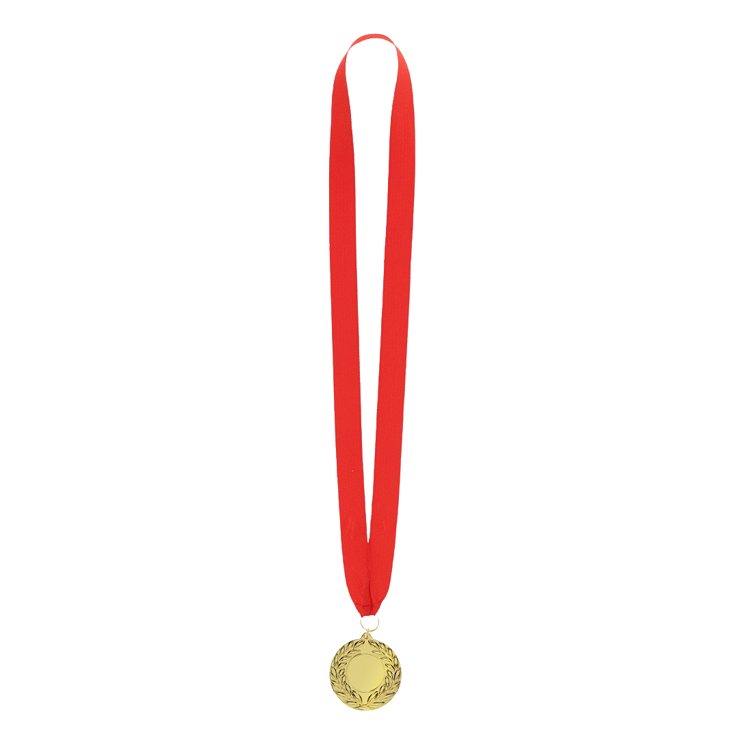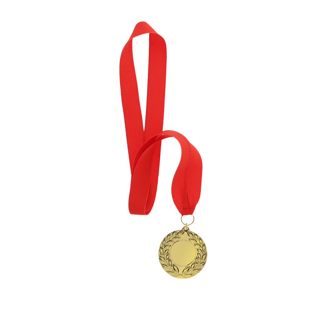 Nasz standardowy medal ma średnicę 7 cm, jest wykonany z wytrzymałego metalu i charakteryzuje się efektownym, wytłoczonym wzorem z tradycyjnym złotym wykończeniem. Jego powierzchnia jest specjalnie przygotowana do znakowania laserowego, co gwarantuje, że logo, nazwa wydarzenia lub dane zwycięzcy zostaną wygrawerowane z wyjątkową precyzją i wyrazistością. Standardowy medal jest gotowy do wręczenia z pasującym metalowym pierścieniem i klasyczną czerwoną wstążką poliestrową.
