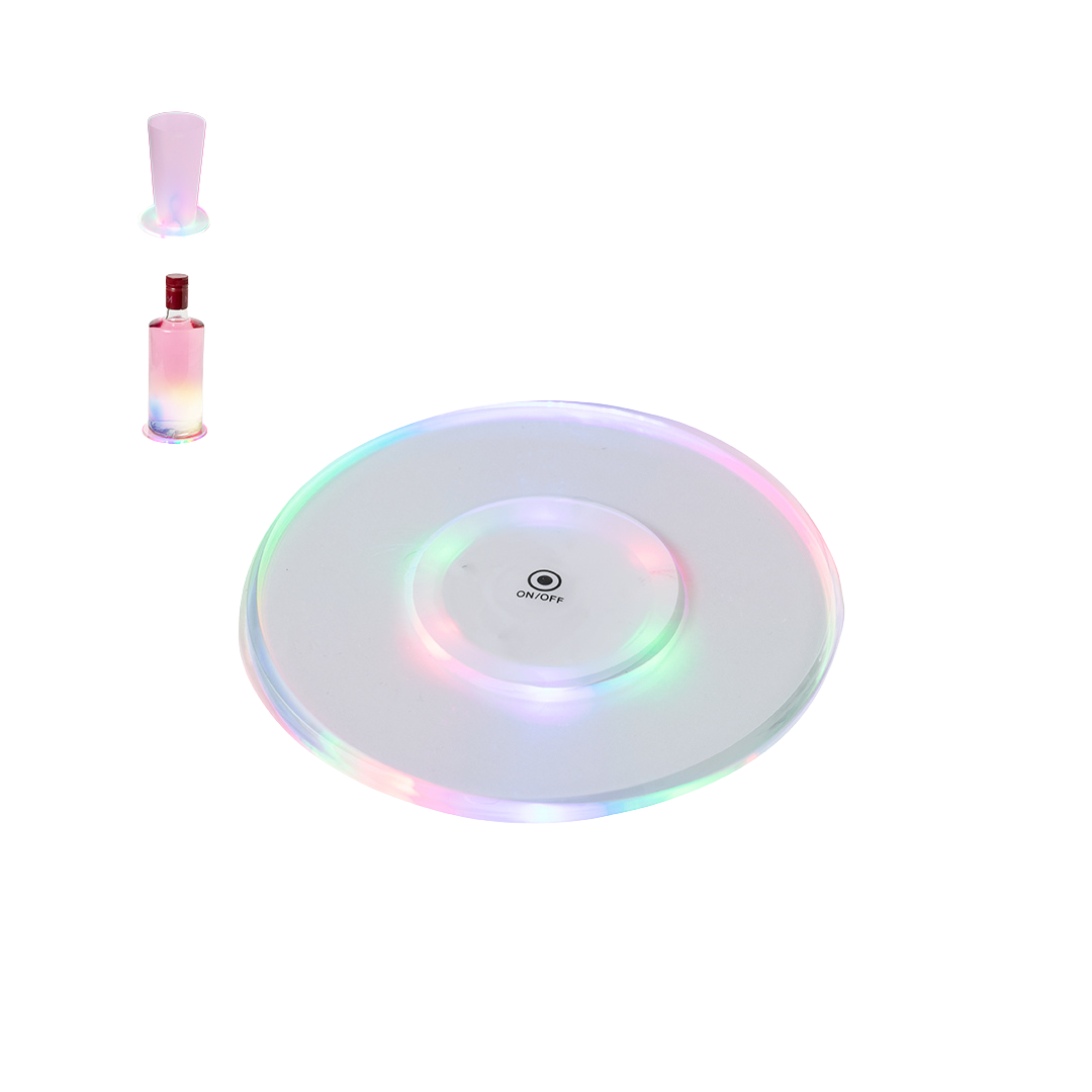 Wykonane z wytrzymałego akrylu, te podstawki posiadają 6 jasnych, wielokolorowych diod LED. Prosty przycisk na podstawie przełącza trzy różne tryby oświetlenia: stały, powolny i szybki, zapewniając widoczność Twojego brandingu.