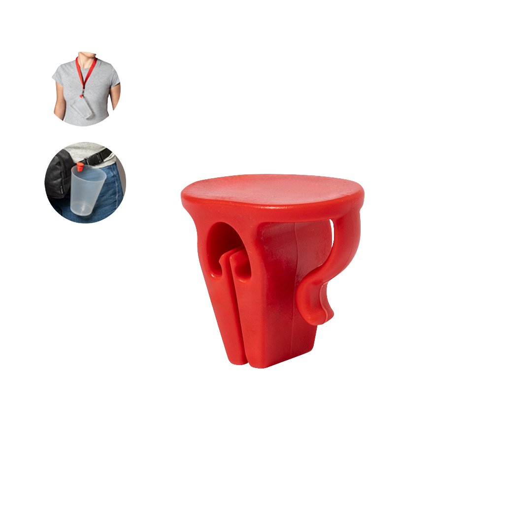 Melhore a experiência dos participantes no seu próximo festival ou conferência com as nossas dicas práticas. Clipe para porta-copos impresso. Este acessório inteligente resolve um problema comum em eventos: segurar um copo reutilizável o dia todo. Ao permitir que os convidados prendam seus recipientes de bebidas vazios com segurança a um cordão ou presilha de cinto, você libera as mãos deles para interagir, dançar ou torcer.